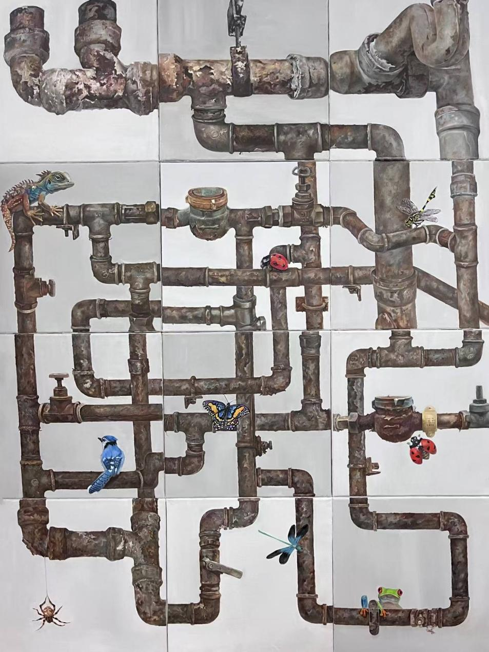 薛琳彦《城市建设者》150cm*100cm 纸本水彩