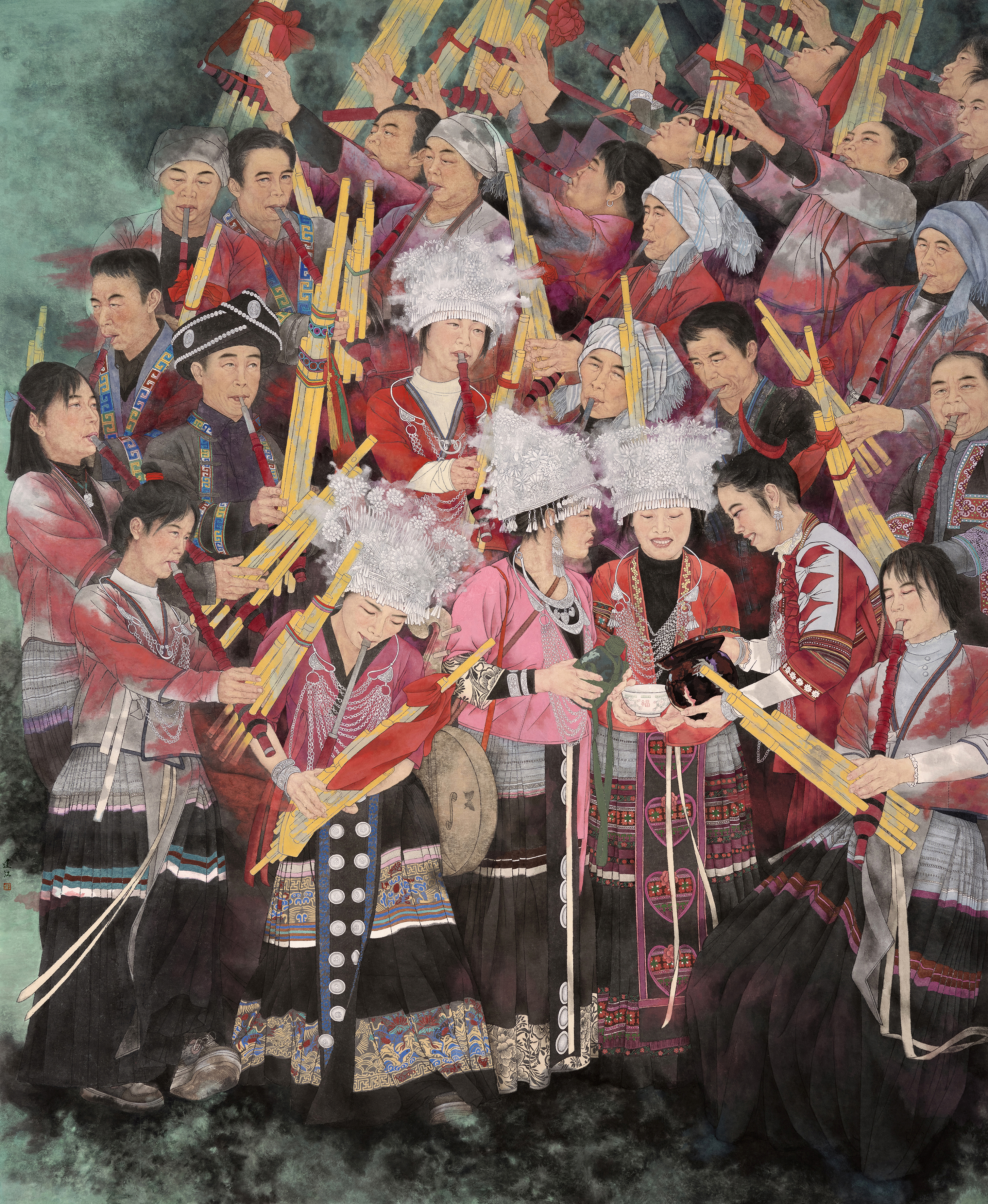 《德峨赶圩之蓝靛集市》186x230cm 绢本