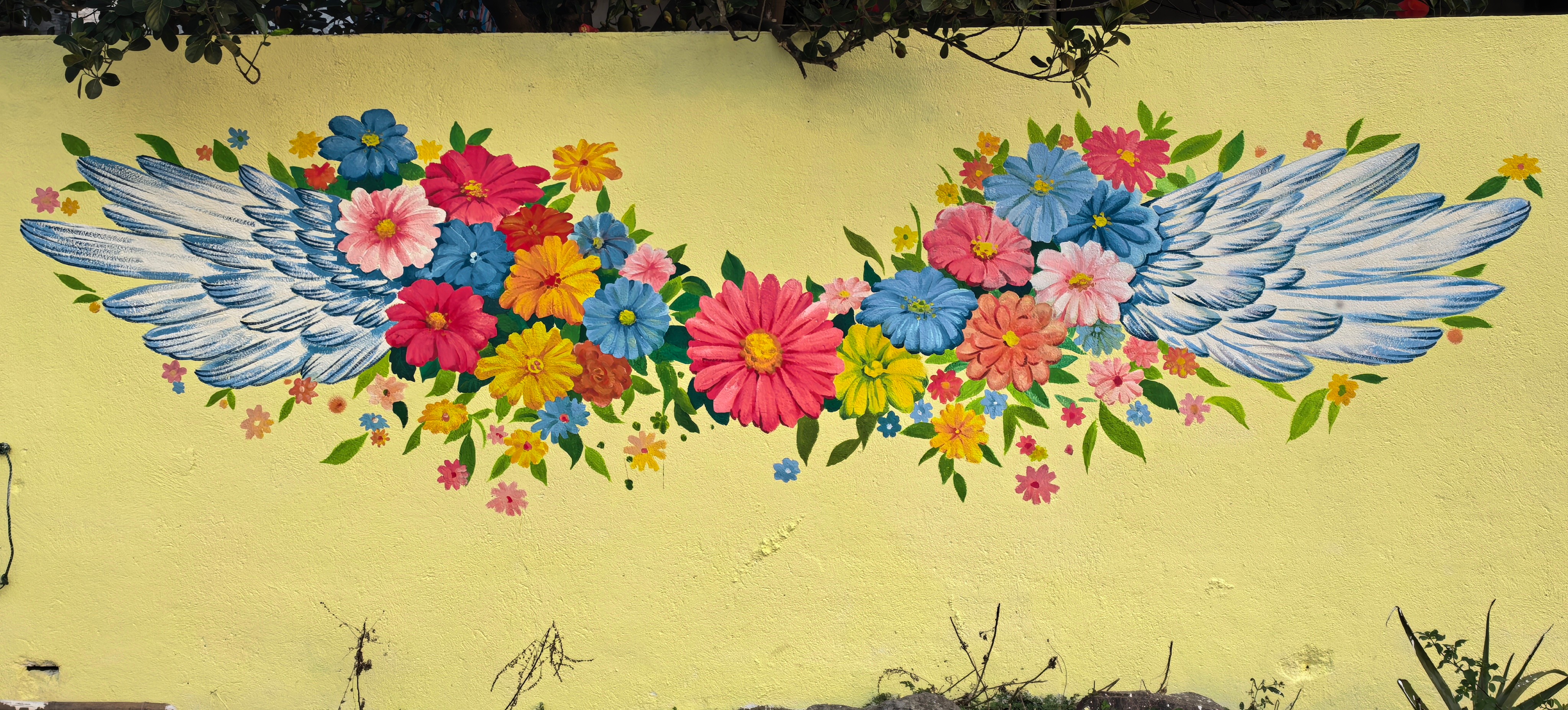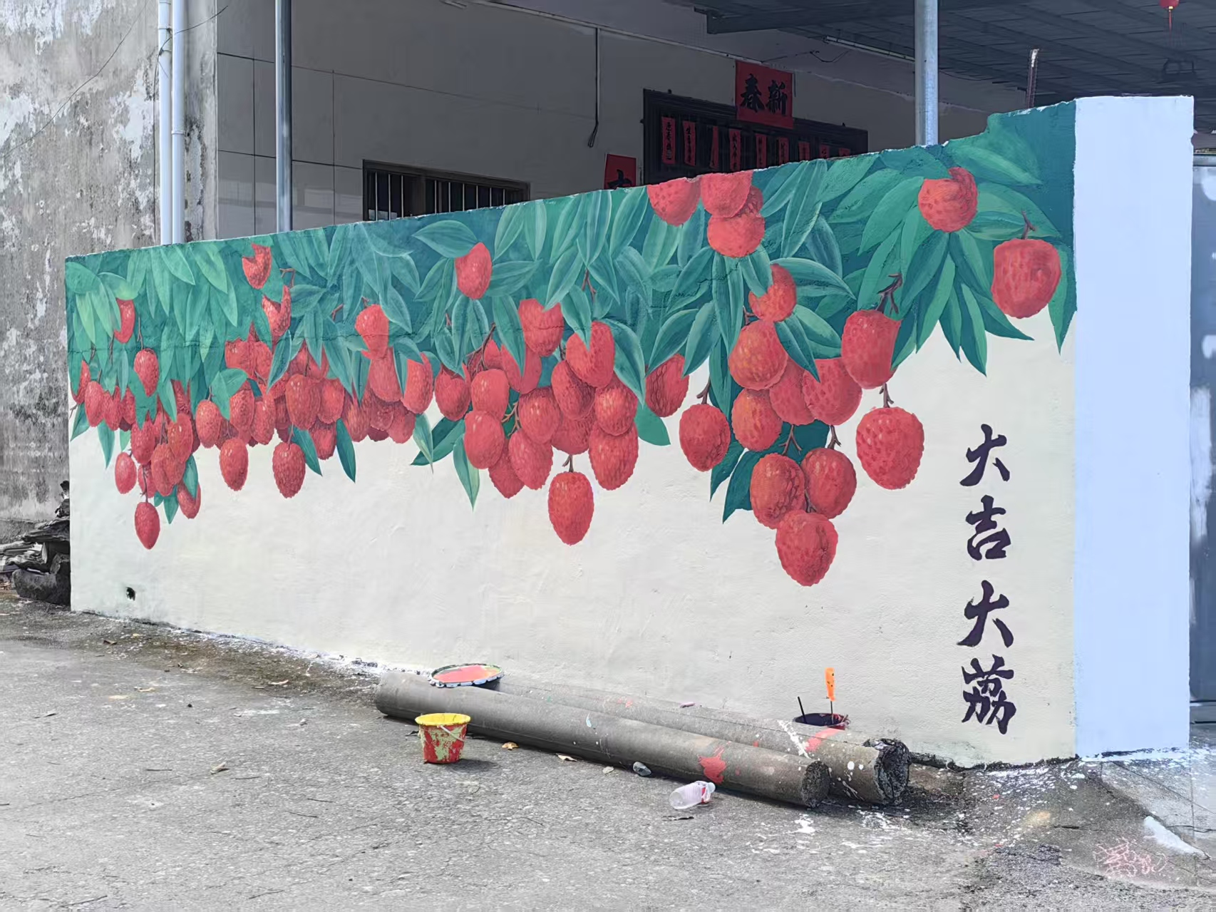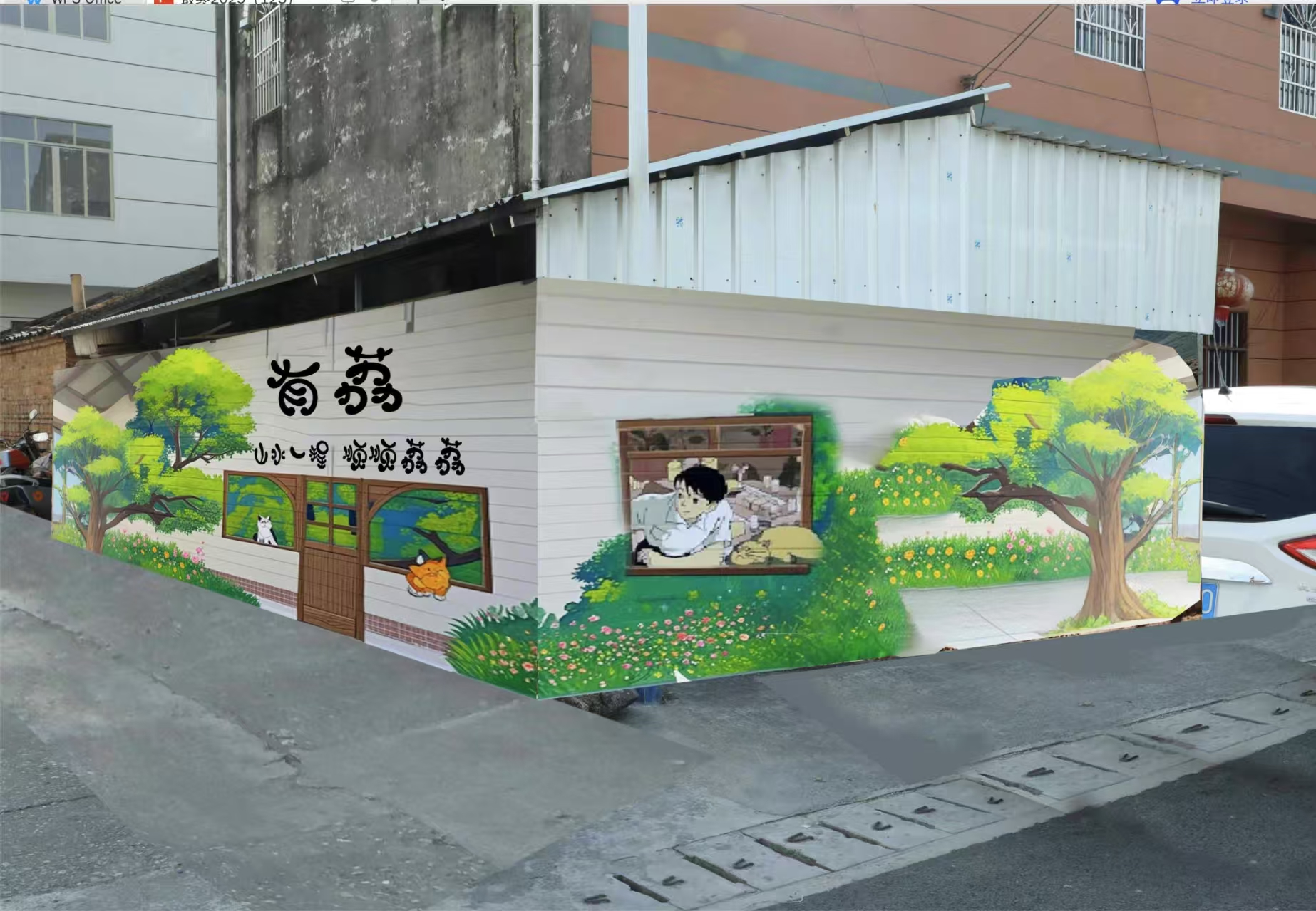 本项目应合浦县曲樟乡政府邀请,由北海艺术设计学院建筑与环境艺术学院主创团队创作实施。项目位于井山村“小洱海”景区周边,结合村落特色与自然风光设计方案,以水彩墙绘形式呈现于临街院落墙面。该横向课题的作品生动展现景区风貌与乡土风情,以艺术赋能乡村振兴,助力村容村貌提升与文旅融合发展,为美化乡村环境、提升景观品质做出了贡献。