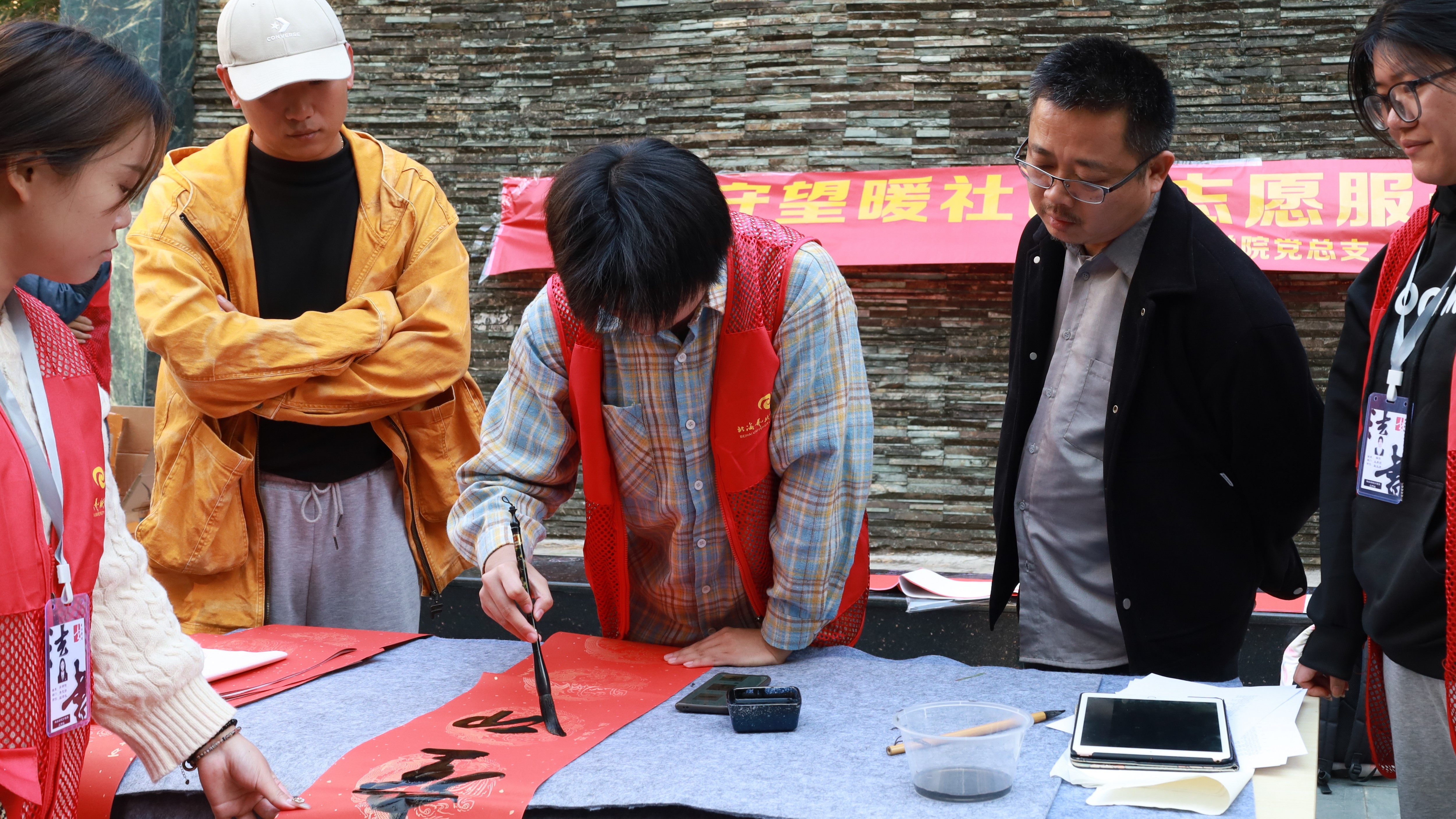 20241221日,正值冬至,由美术学院党总支、书法学院党支部、北艺书法协会联合举办的创城活动——“邻里守望暖社区,志愿服务我先行”在橄榄苑小区顺利举行。