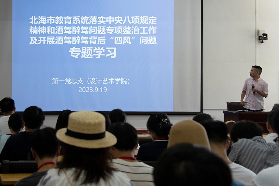 设计艺术学院于2023年9月19日在伦理楼召开“落实中央规定八项精神和酒驾醉驾问题专项整治工作及开展酒驾醉驾背后‘四风’问题”的专题学习,学习活动由学院党总支书记黄锦主持并领学,全体教职员工参加。
