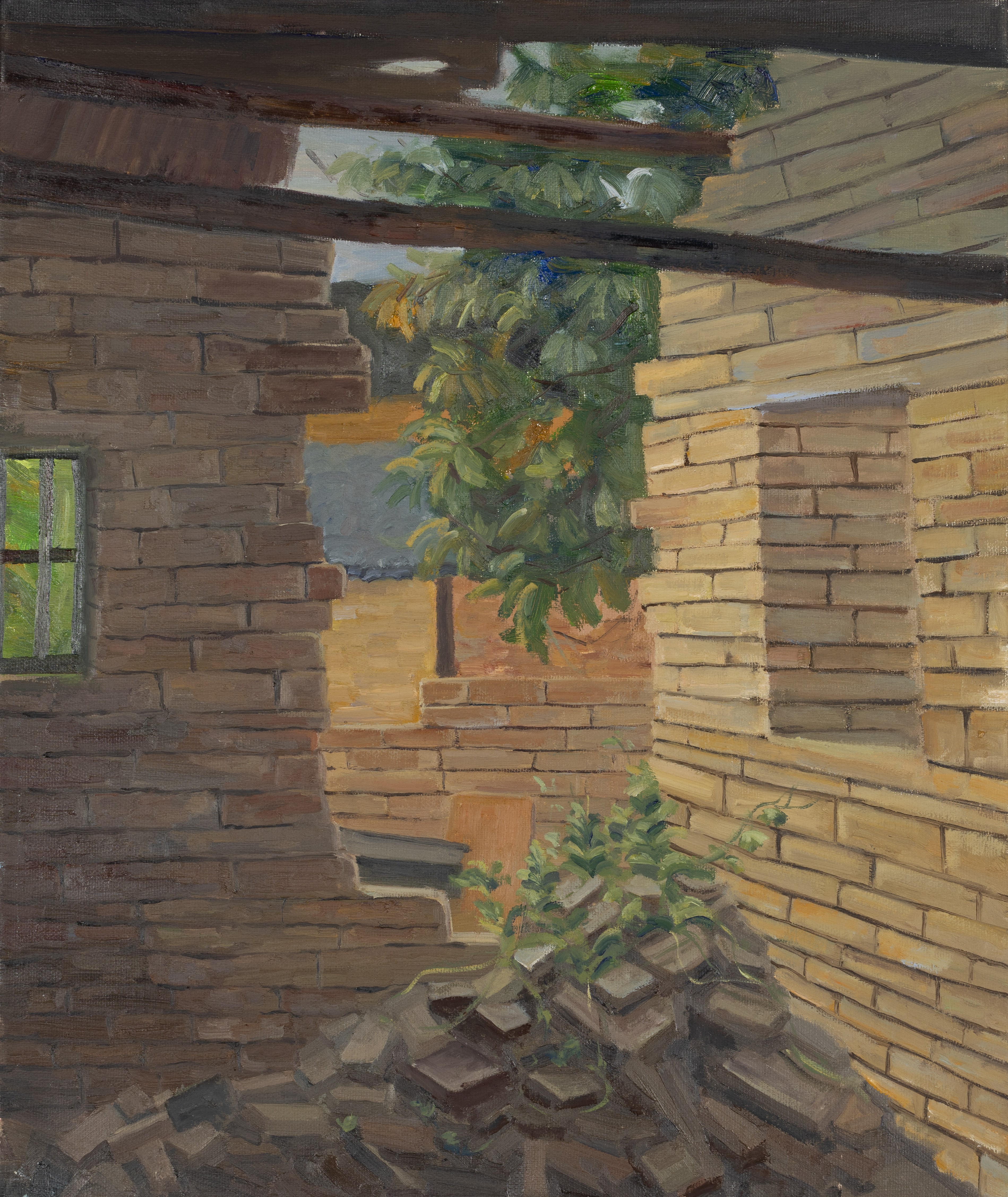 陆兴月,绘画专业,《墙隅翠影》,50x60cm,布面油画