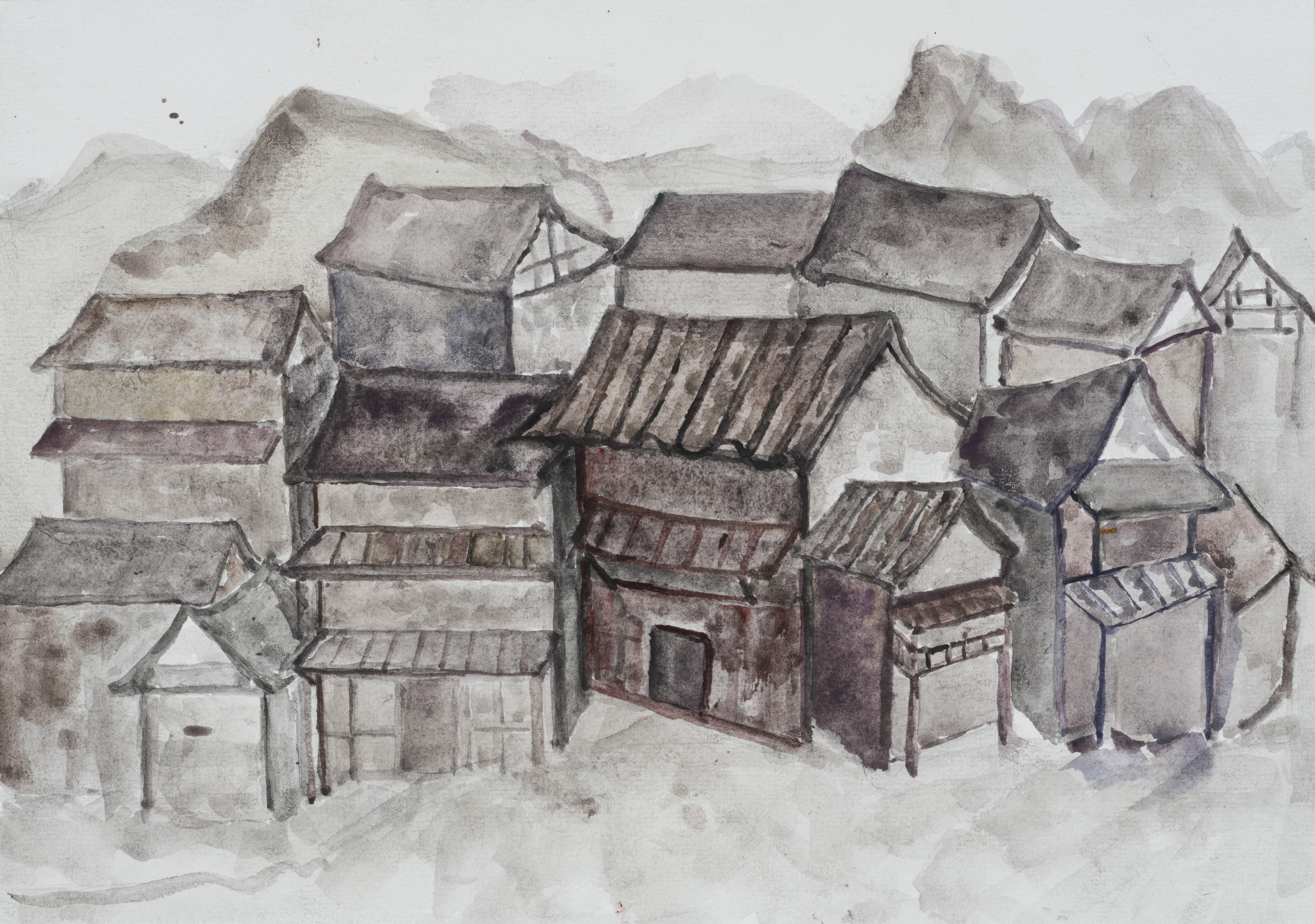 刘孟典,绘画专业,《记忆·故乡》,4开,纸本水彩