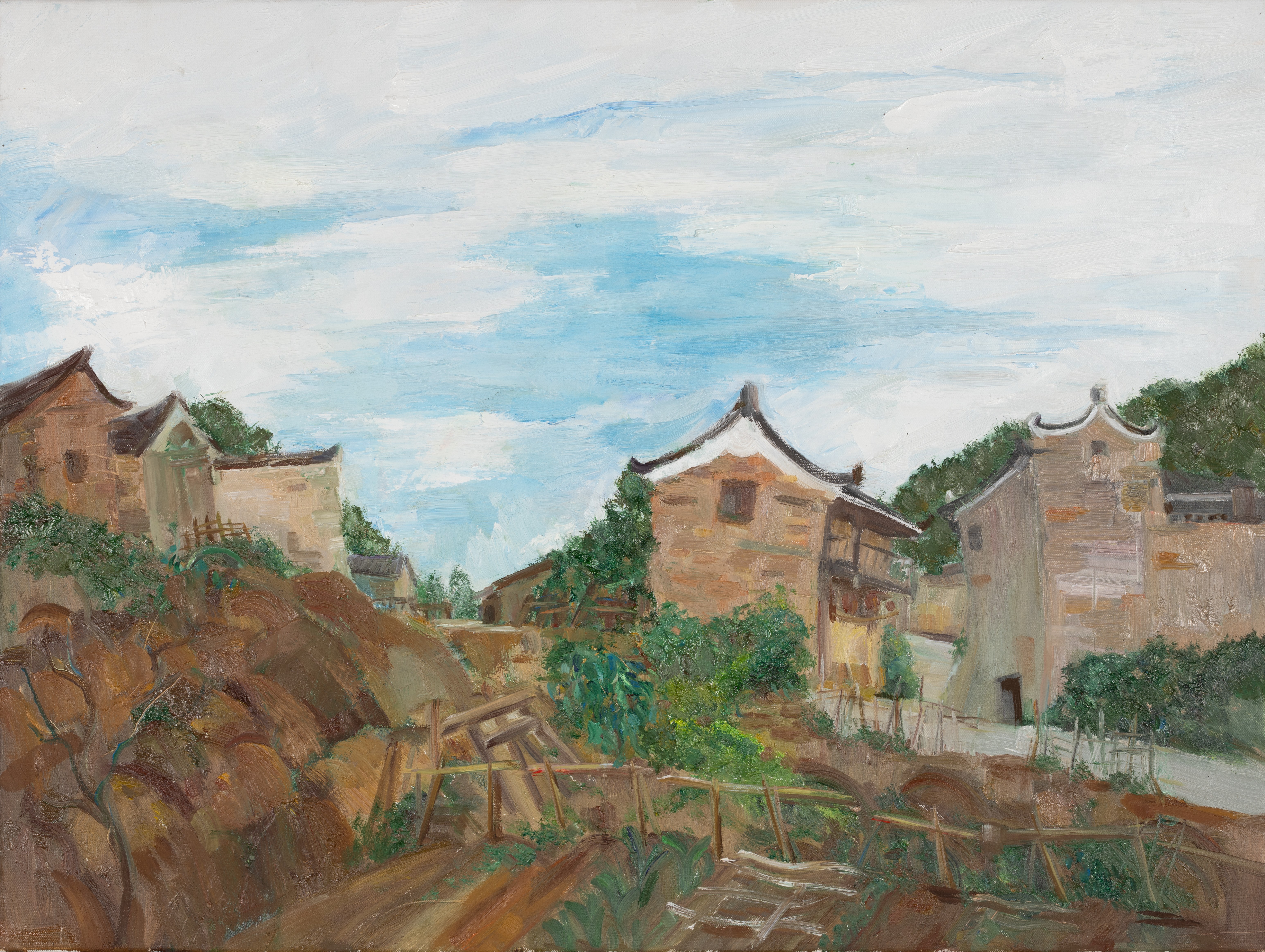 叶钧皓,绘画专业,《云,笼罩着村落》,60x80cm,布面油画