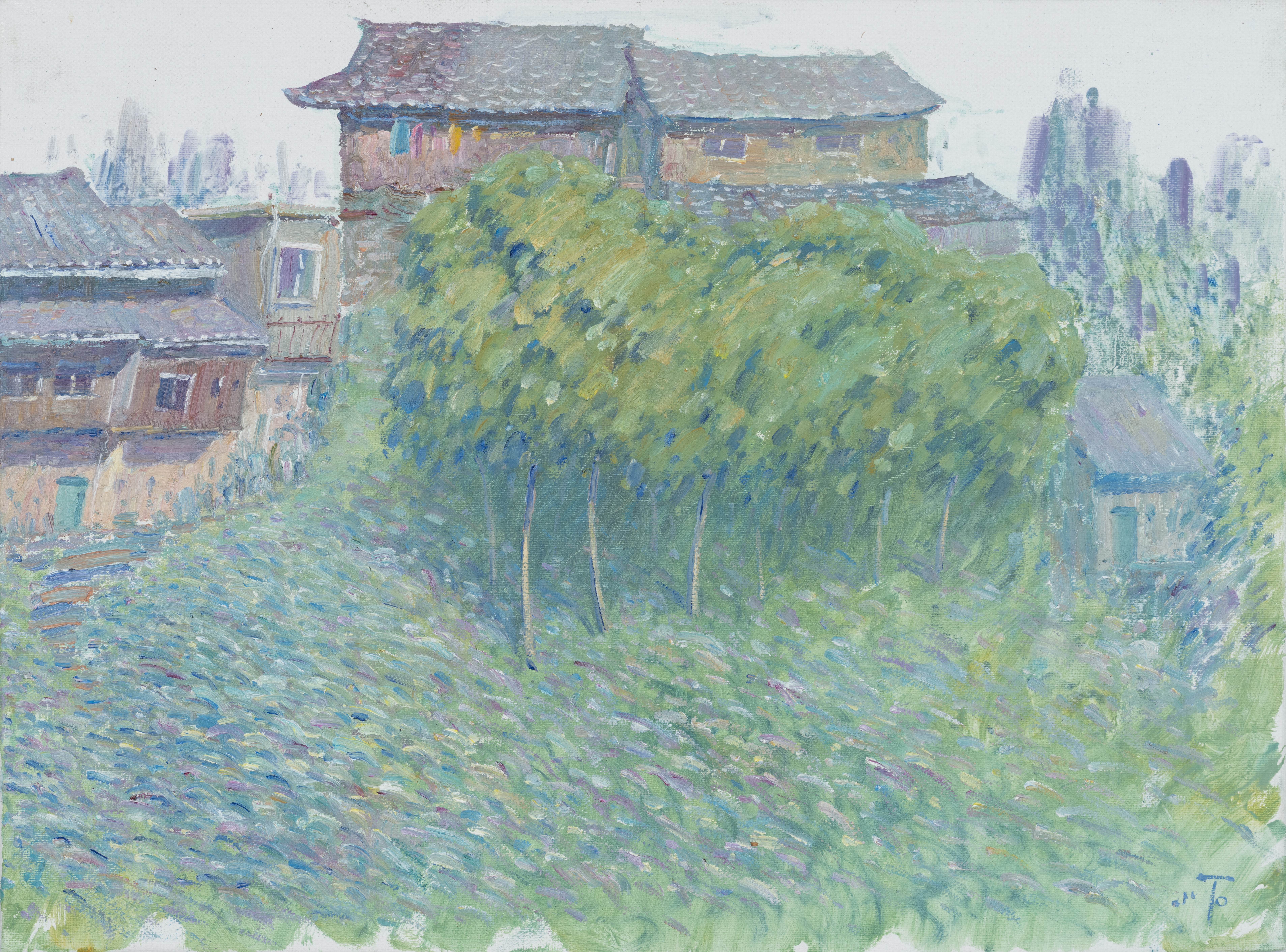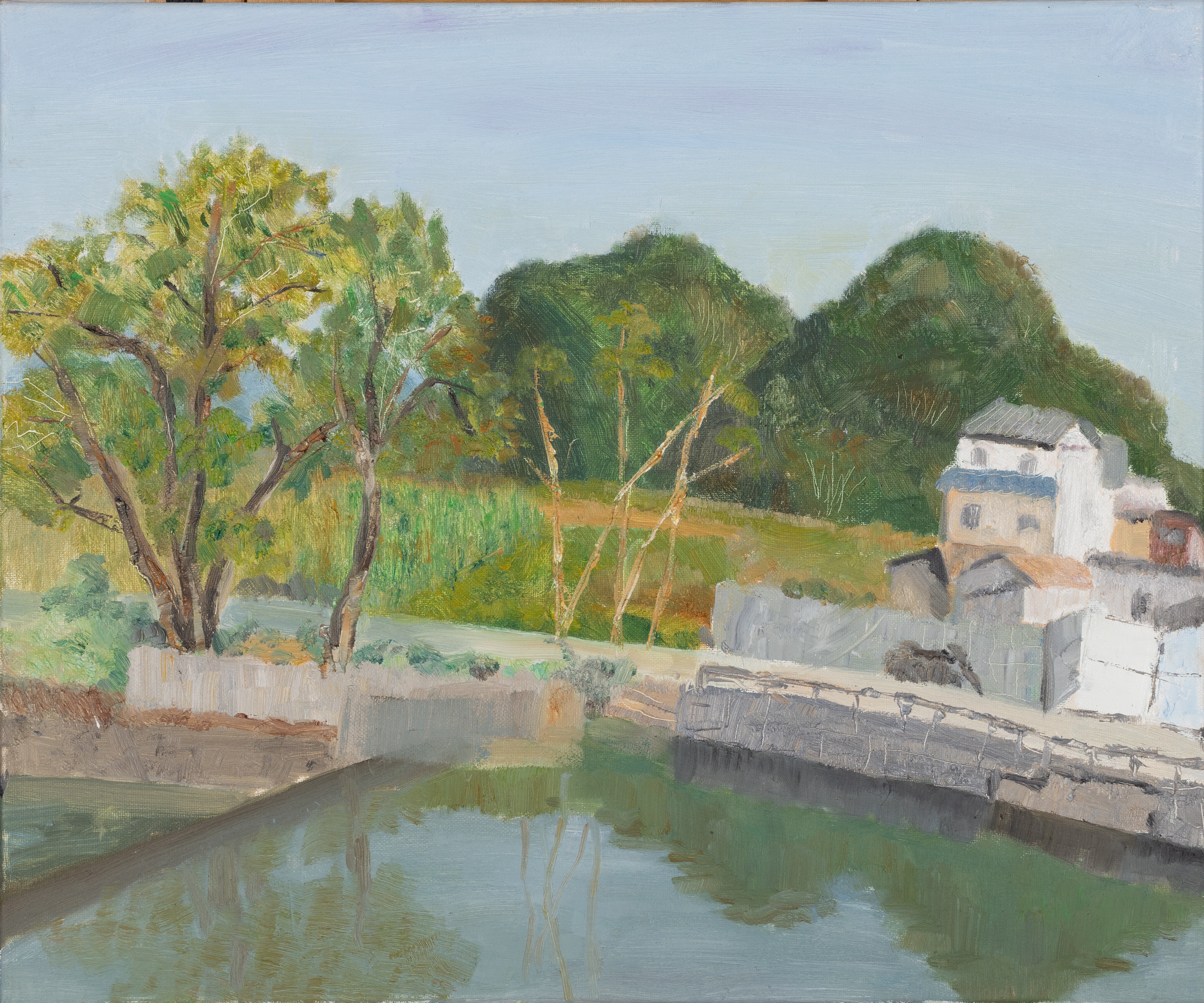钟莹,绘画专业,《晨巷迟池》,50x60cm,布面油画