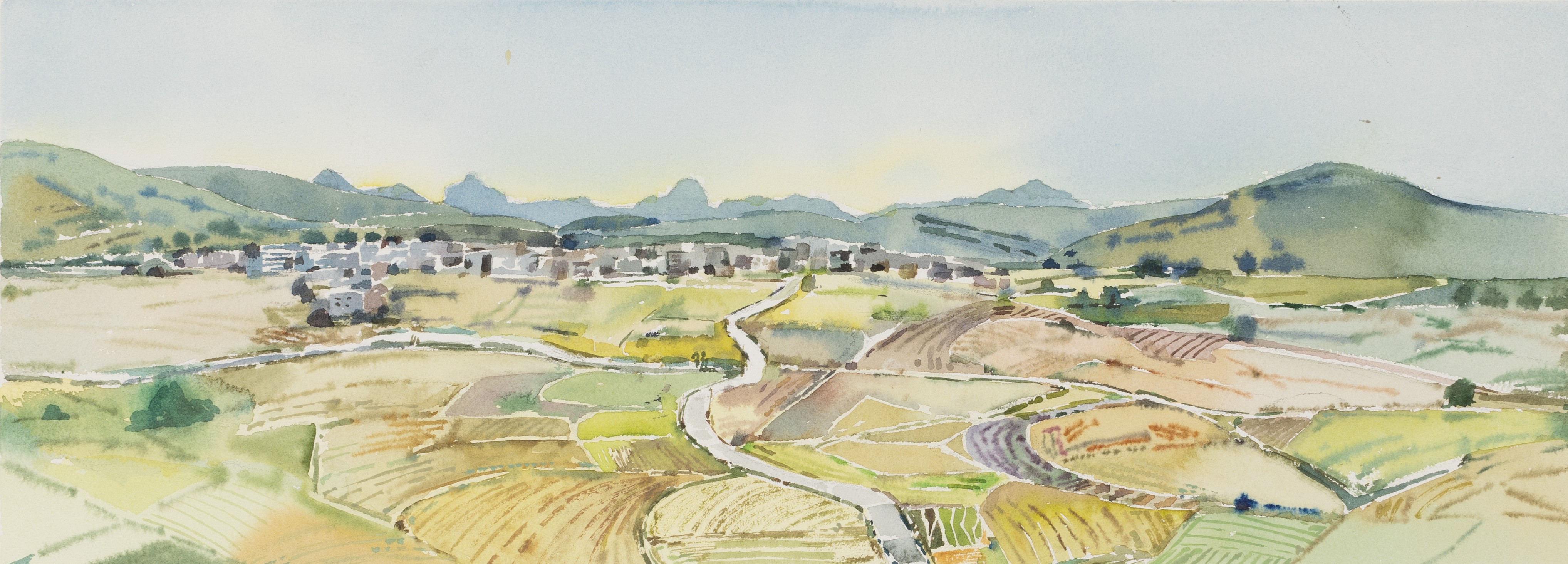 陈亚宗,《傍山而居》,30x50cm,纸本水彩