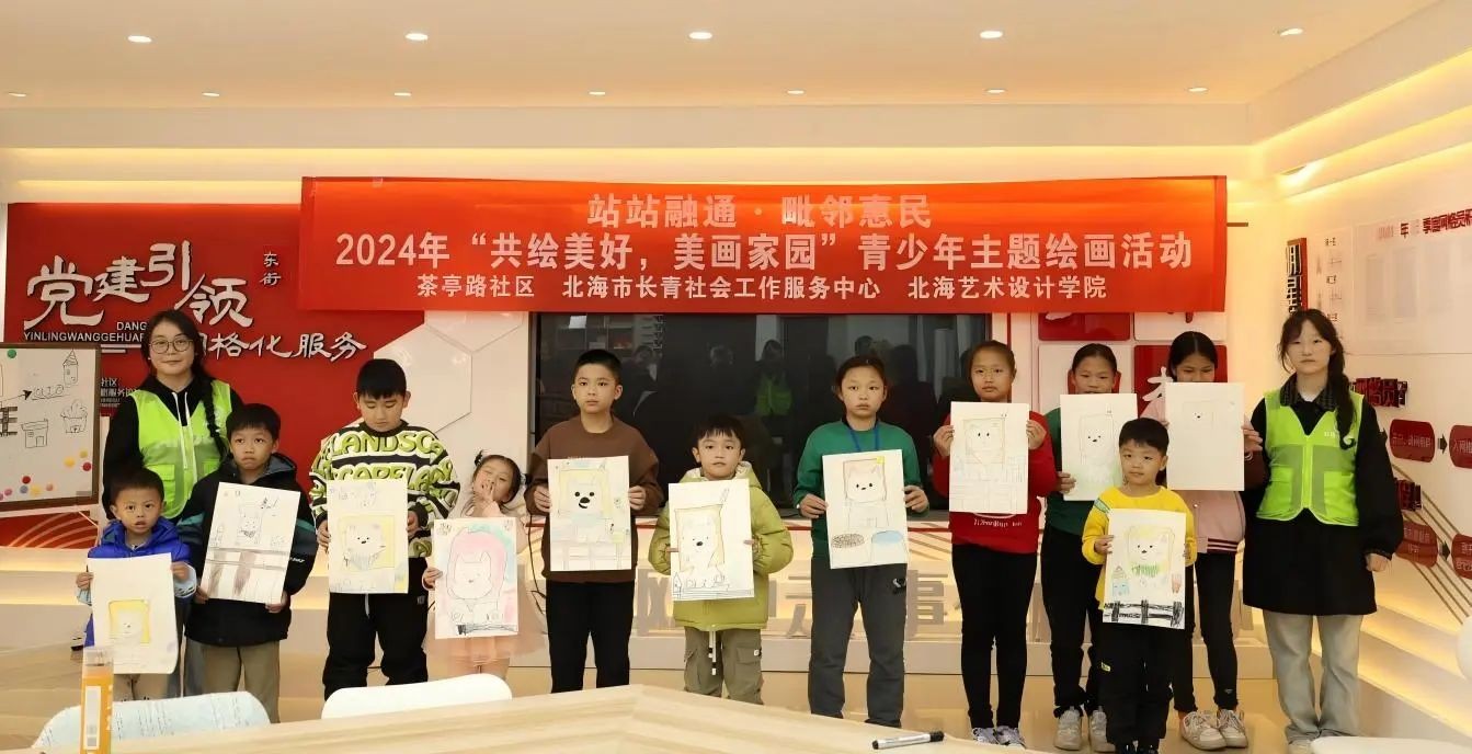 在茶亭路社区开展了以“共绘美好,美画家园”为主题的青少年主题绘画活动。快看!孩子们骄傲地举起自己手中的作品,画面色彩斑斓,线条流畅自由,每一幅画作都仿佛被赋予了生命,闪烁着纯真无邪与无限希望的光芒。