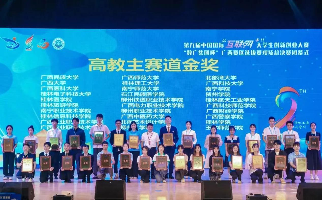 8月1日至4日,第九届中国国际“互联网+”大学生创新创业大赛“数广集团杯”广西赛区选拔赛现场总决赛在北部湾大学激情开赛,来自广西66所学校的2300多名师生代表携516项作品角逐现场总决赛。经过激烈比拼,我校参赛项目《惊喜八桂与“坭”同行》斩获高教主赛道本科生创意组金奖!