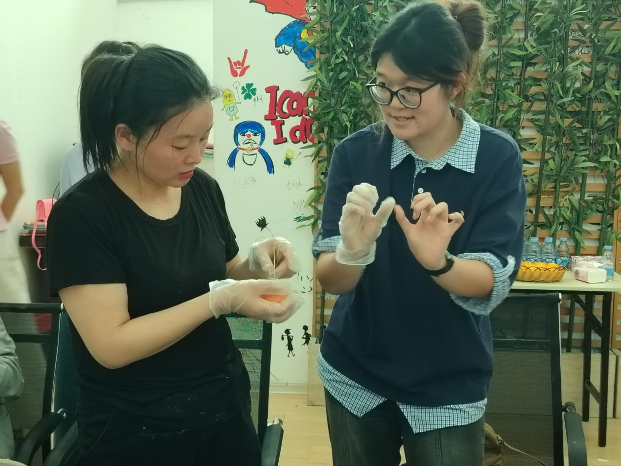 项目负责人傅涵悦为大家介绍非遗手工研磨皂与工业皂的区别
