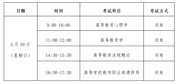 《高等教育心理学》《高等教育学》《高等教育法规概论》《高等学校教师职业道德修养》4门科目考试成绩的合格分数线均设定为60分。