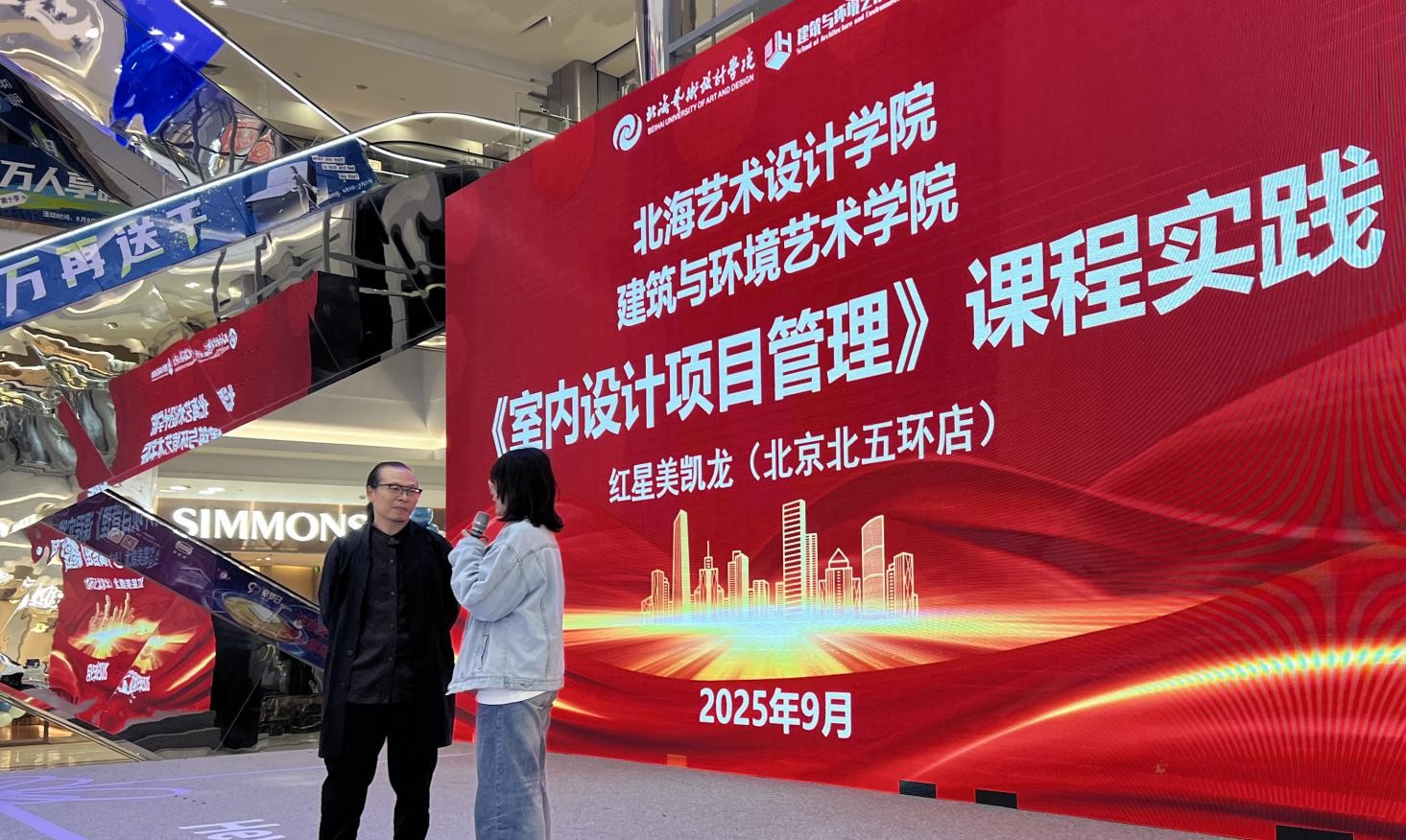 9月18日至19日,建筑与环境艺术学院延续创新实践教学模式,由北京实践基地组织环设22级学生赴北京红星美凯龙全球家居1号店,开展为期两天的沉浸式实践教学,将《室内项目管理》课堂搬至行业一线。本次课程由郭瑞、张云、张浪三位资深设计师主讲,以“问答互动+案例解析+市场调研”形式,打造兼具专业深度与行业广度的实践课堂。