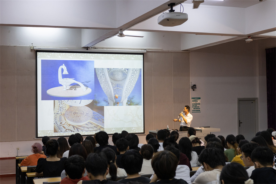 9月19日晚,合浦汉代文化博物馆馆长、副研究馆员廉世明在我校西校区伦理楼107教室,为广大师生带来了一场题为《文物衍生文创产品的探索——以合浦汉代文化博物馆藏文物为例》的精彩讲座,讲座由我校设计艺术学院院长李林平主持。