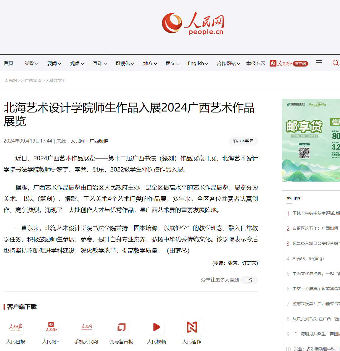 人民网:北海艺术设计学院师生作品入展2024广西艺术作品展览
