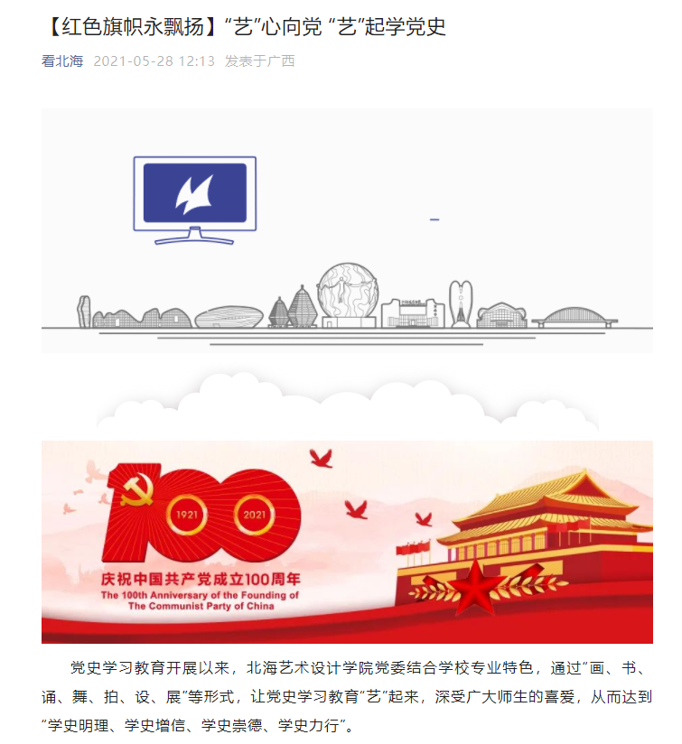广西新闻网:“艺”心向党 北海艺术设计学院积极开展党史学习教育