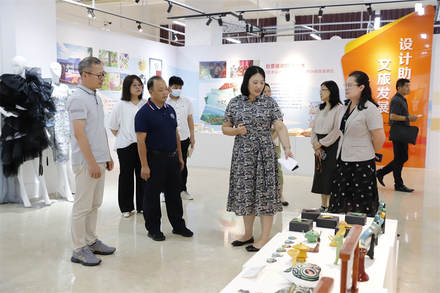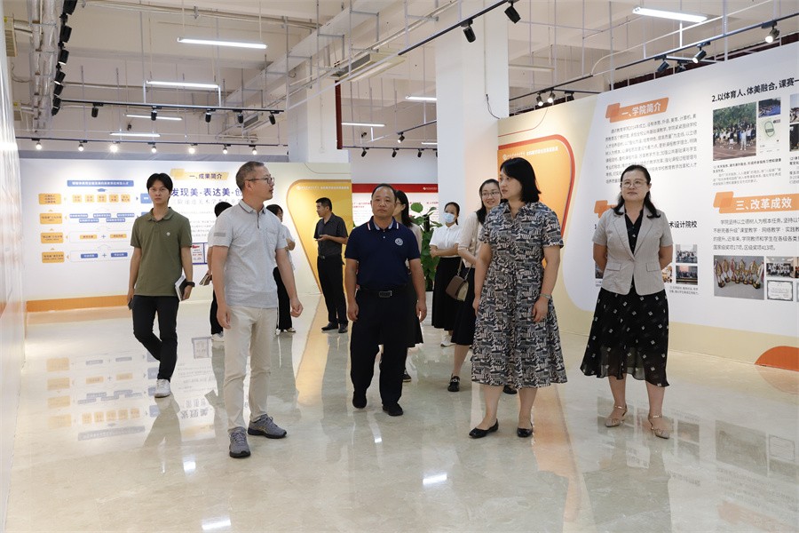 调研组一行先后参观了我校“本科教学综合改革成果展”“校政企行协同育人 服务地方经济发展”展厅和大师工作室、学生作品展等,详细了解学校学科建设、师生作品创作、产学研融合、校企合作、教育教学成果转化和相关版权保护、版权创造和版权登记等方面的情况。