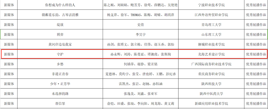 近日,教育部思想政治工作司发布了第七届全国大学生网络文化节和全国高校网络教育优秀作品推选展示活动入选名单,我校三件作品脱颖而出。在第七届全国大学生网络文化节中,动漫类《白马》入选“优秀推广作品”,《远古的回响》入选“优秀入围作品”;新媒体作品《守护》入选第七届全国高校网络教育优秀作品推选展示活动“优秀展播作品”。