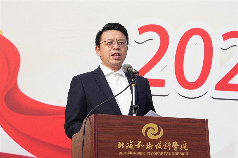 北海市海城区人民武装部副部长涂军红在讲话中阐述了军训的重要性。他指出,学生军训是学校强化思想政治建设,落实立德树人的根本任务、提高教学质量的重要手段,同时也是磨砺学生意志、增强身体素质、养成良好习惯的有效途径,对加快推进人才强国建设,实现中华民族伟大复兴意义非凡。他对全体参训学生提出希望:一是要胸怀远大抱负,激发爱国拥军的高尚情怀。爱国主义是中华民族文化的核心,是民族精神的主题。大家要在军训中增强国防意识,树牢国防观念,培育家国情怀,努力做一个负责任、有担当、能作为的优秀青年。二是要发扬从军尚武精神,锤炼敢打敢拼的意志品质。同学们要在军训中磨砺顽强作风和无畏精神,激发奋勇争先的拼搏意志,坚定不畏困难、战胜自我的决心和勇气。提高适应能力和抗压能力,为今后的学习、工作、生活打下坚实基础。三是要遵循军队的标准,培养遵规守纪的行为自觉。军队是一个雷厉风行、令行禁止的集体。大家要服从命令、听从指挥,持续强化纪律观念。严格要求自己,自觉敬畏纪律,争做德智体美劳全面发展的好学生。同时,他向军训教官提出了“要发挥模范作用”“要遵循训练规律”“要遵守军训纪律”三点要求,发扬部队不怕苦、不怕累精神,扎实展开训练,让学生在训练中真正学有所获,不辜负重托,圆满完成军训任务。