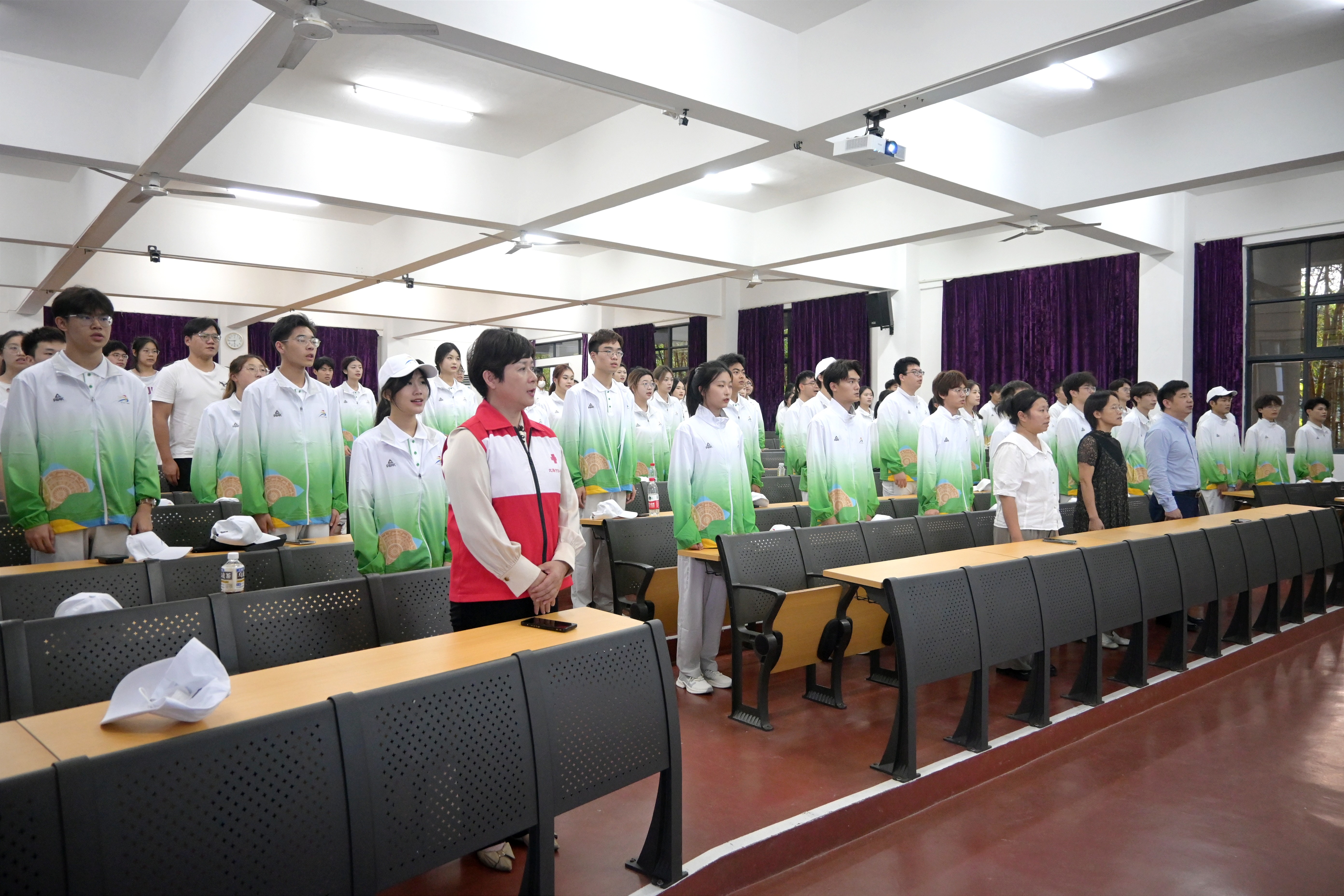 2023年11月1日,第一届全国学生(青年)运动会足球比赛志愿者出征仪式在北海艺术设计学院伦理楼107举行。出席本次出征仪式的领导有第一届全国学生(青年)运动会志愿者经理、市旅游文体竞体科局科长陈瑛,我校党委副书记彭仁,团市委宣传部负责人叶婵,以及全体志愿者和带队老师们。