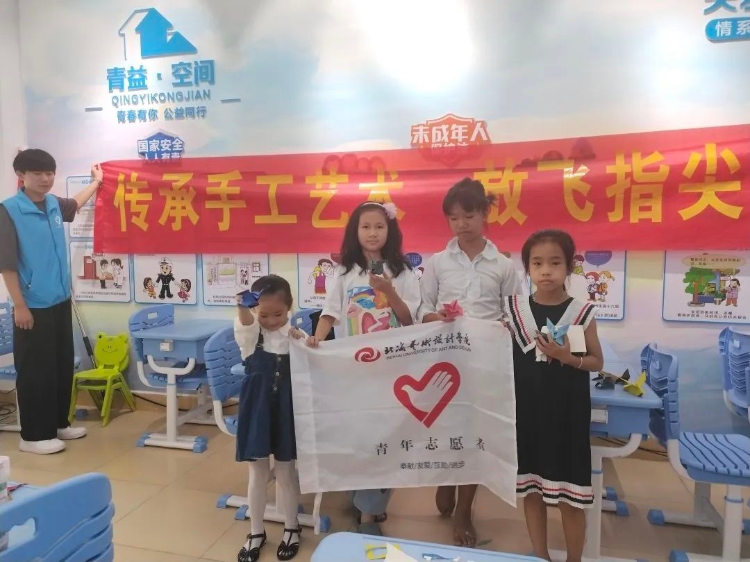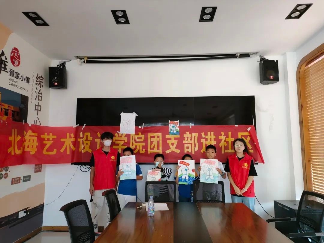 我校青年志愿者协会的学生志愿者共分为五个队伍,根据不同社区进行不同主题的教学,这次社区支教主题分为常规项目“北海艺术设计学院团支部进社区”和特别项目“传承手工艺术,放飞指尖梦想”,每节社区由3位志愿者负责,在上课的同时,也负责照看孩子的安全。