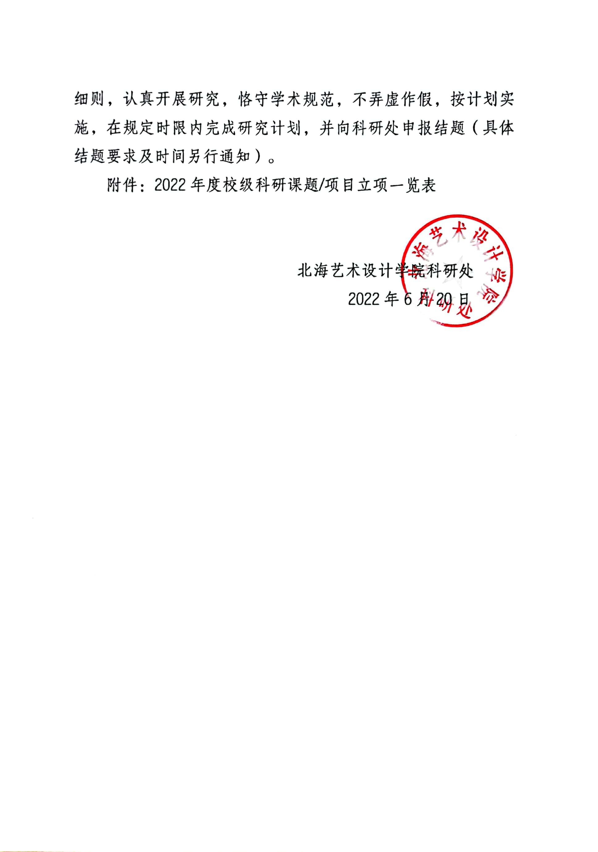 北艺科研〔2022〕15号 关于2022年度校级科研课题/项目立项评审结果的通知