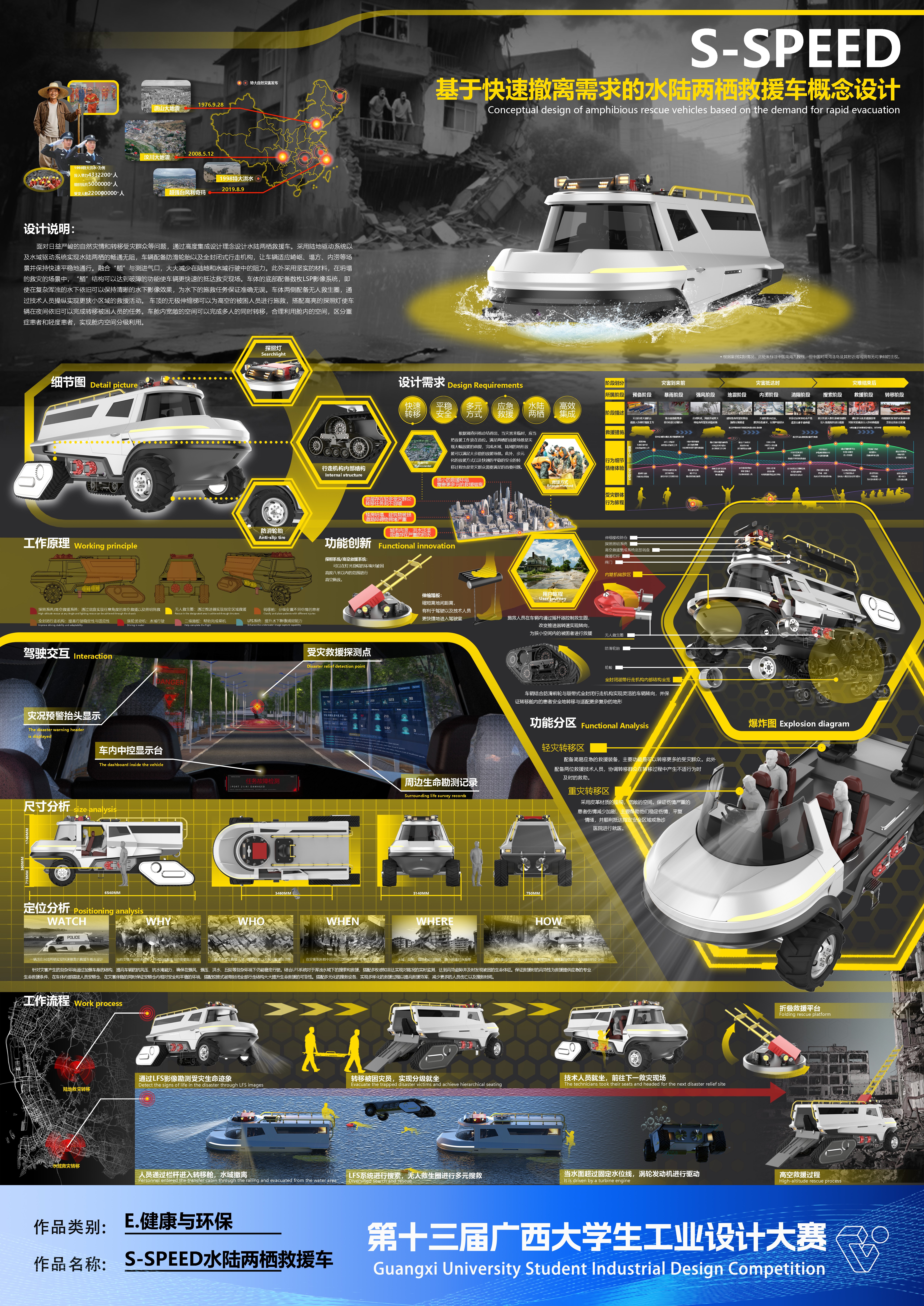 作品名称:S-SPEED水陆两栖救援车    作者:朱佳城、向宇乐、李佳、熊晓瑜、赵时榕
