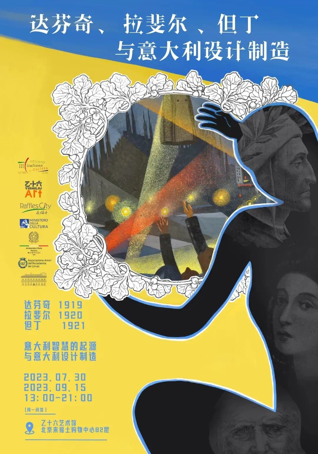 该展览分为三个部分,分别以达芬奇、拉斐尔和但丁为主题,并额外增加了一个专门为中国设置的部分,以“意大利制造的起源”为主题。