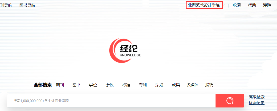在校园网内打开经纶平台网址:http://k.vipslib.com/ ,系统会自动登录,右上角会有学校名称认证,如打开网址后提示要登录,请前往校园网环境使用。