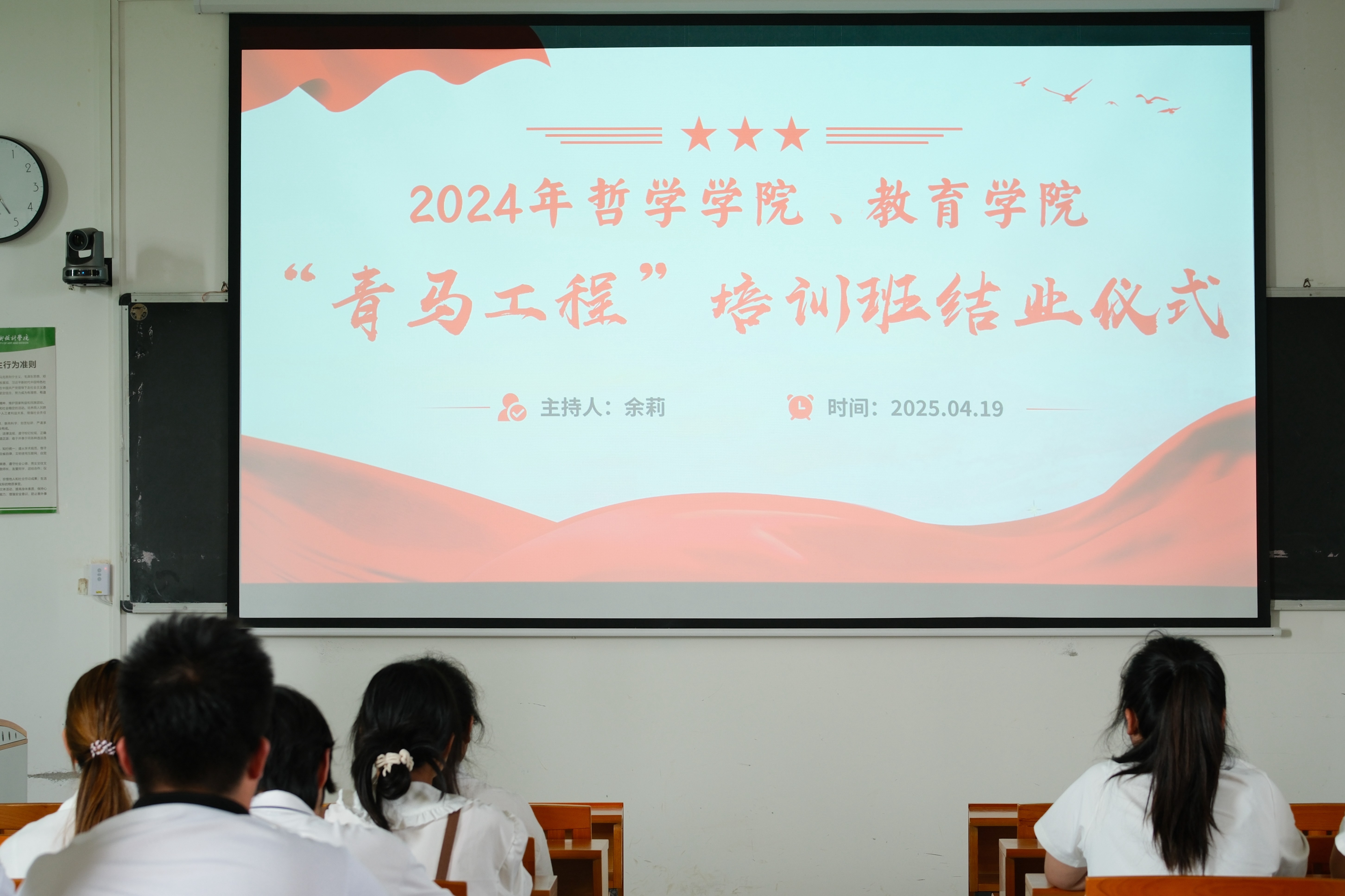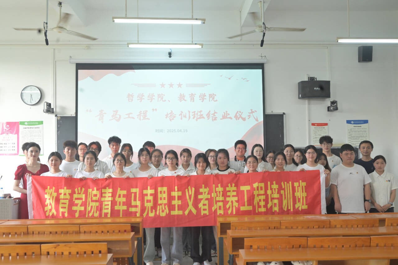 2025年4月19日,我校教育学院、哲学学院于东校区觉悟楼 402教室举办的第一期青年马克思主义者培养工程结业仪式圆满落幕。哲学学院党支部书记谢伟、教育学院团总支指导教师陈美霖出席结业仪式,各学院团员及学生干部共同参加活动。