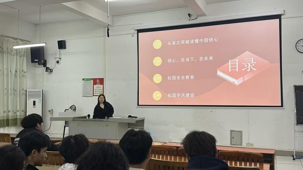 我院各班班会的顺利开展不仅增强了学生的爱国情怀和民族自信心,还提高了他们的安全意识和学风建设意识。希望学生们能够将所学应用到日常生活中,为构建和谐校园贡献自己的力量。(黄池,甄雪 摄)