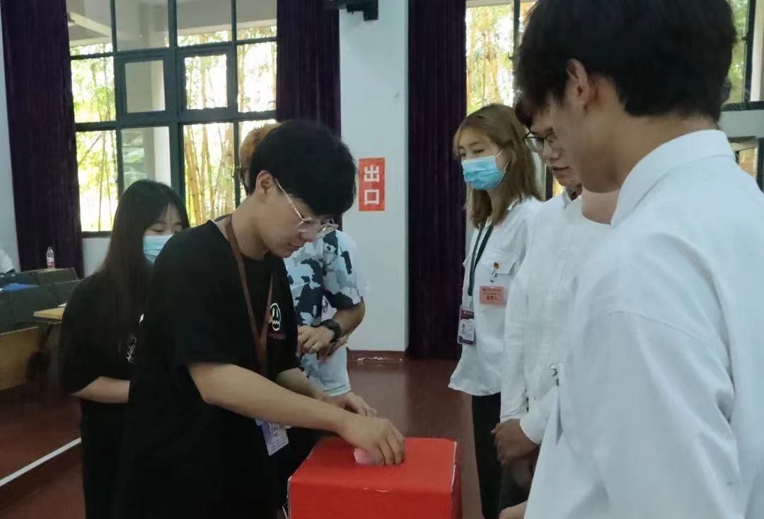 正式会议第十项,选举第十九届学生委员会委员。各个学生代表认真履行自己公平、公正的职责,依次将选票投入选票箱;