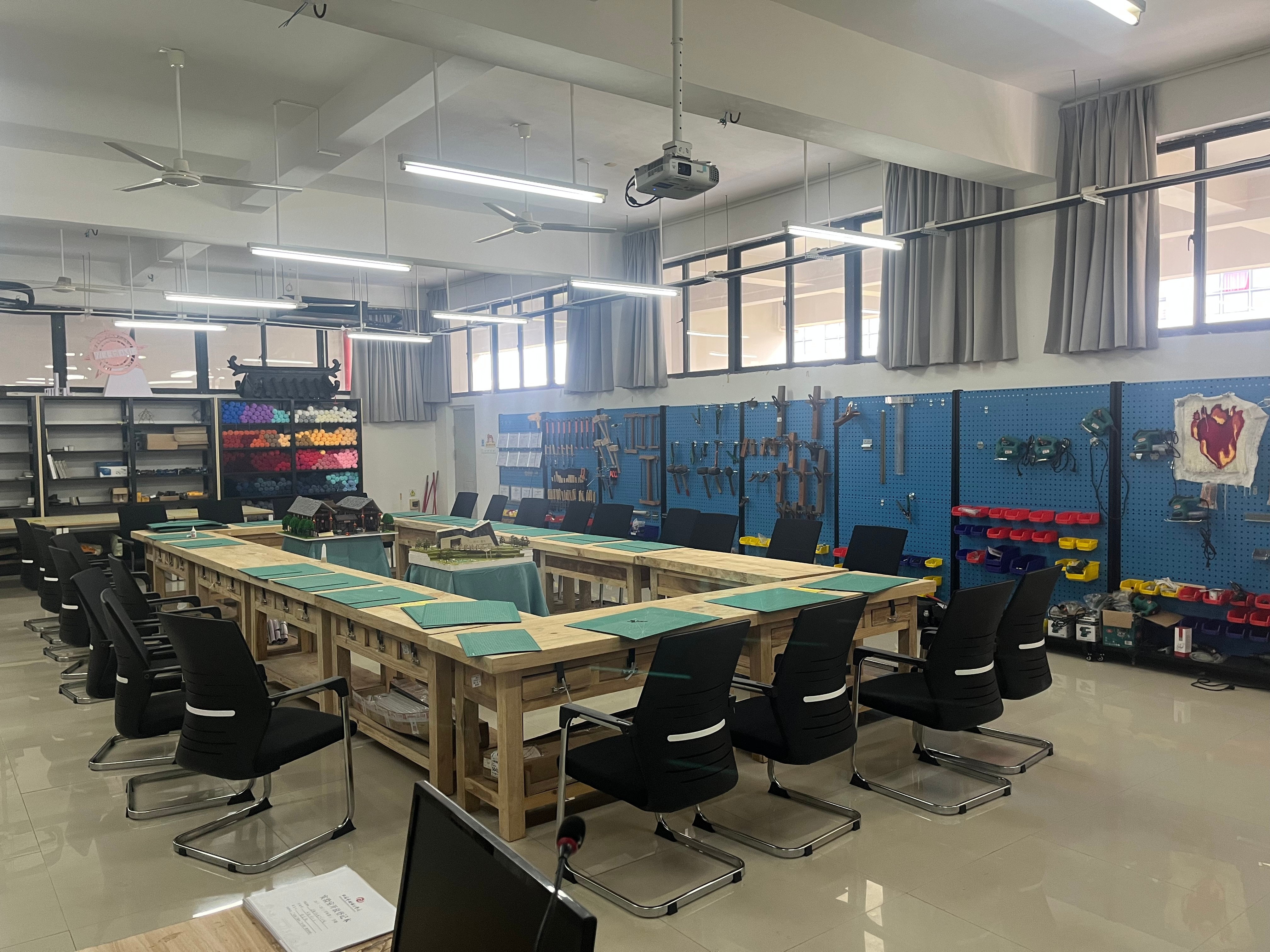 建筑与环境艺术学院模型制作实验室位于北海艺术设计学院西校区公德楼407,建于2021年,使用面积140平方米,主要仪器设备有电热丝切割机、电脑刻字机、实木工桌台、模型制作工具、木井方木工工具等模型制作设备,为环境设计专业实验课程提供了技术设备与物质保障。