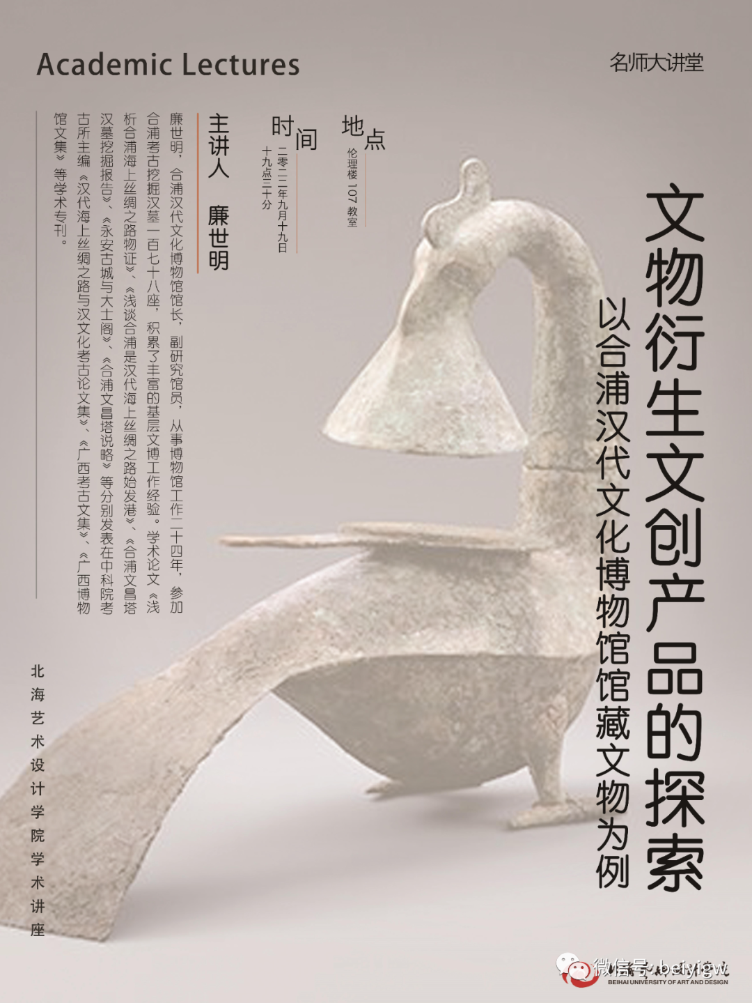 讲座预告 | 廉世明《文物衍生文创产品的探索 ——以合浦汉代文化博物馆馆藏文物为例》