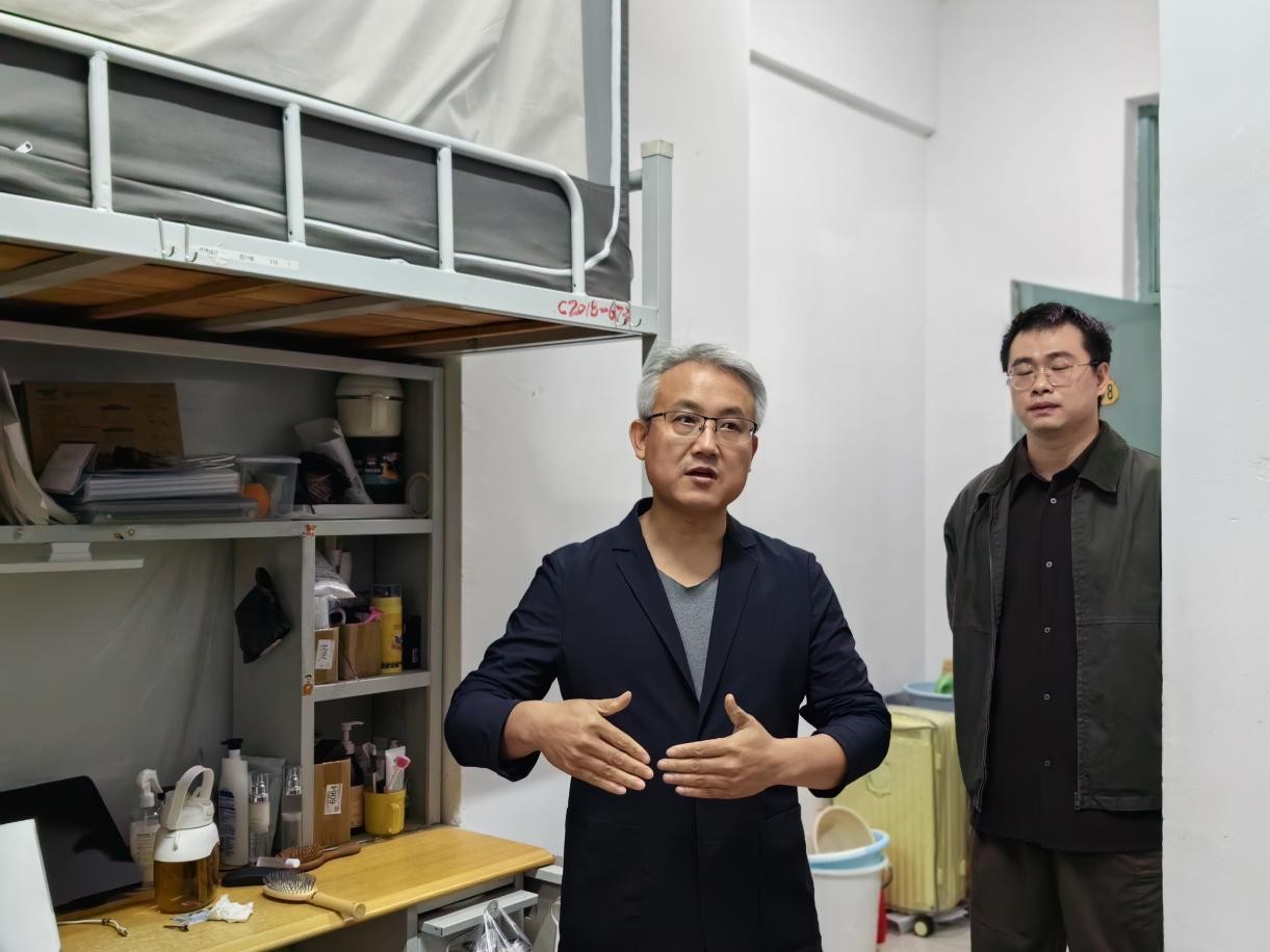 走访期间,学院领导与辅导员们逐一走进学生宿舍,与同学们面对面亲切交谈,细致询问大家的住宿适应情况、学习进度以及生活中遇到的困难。叮嘱同学们要合理规划作息时间,平衡好课堂学习与课余生活的关系,既要保持积极进取的学习状态,也要养成规律作息的健康习惯。