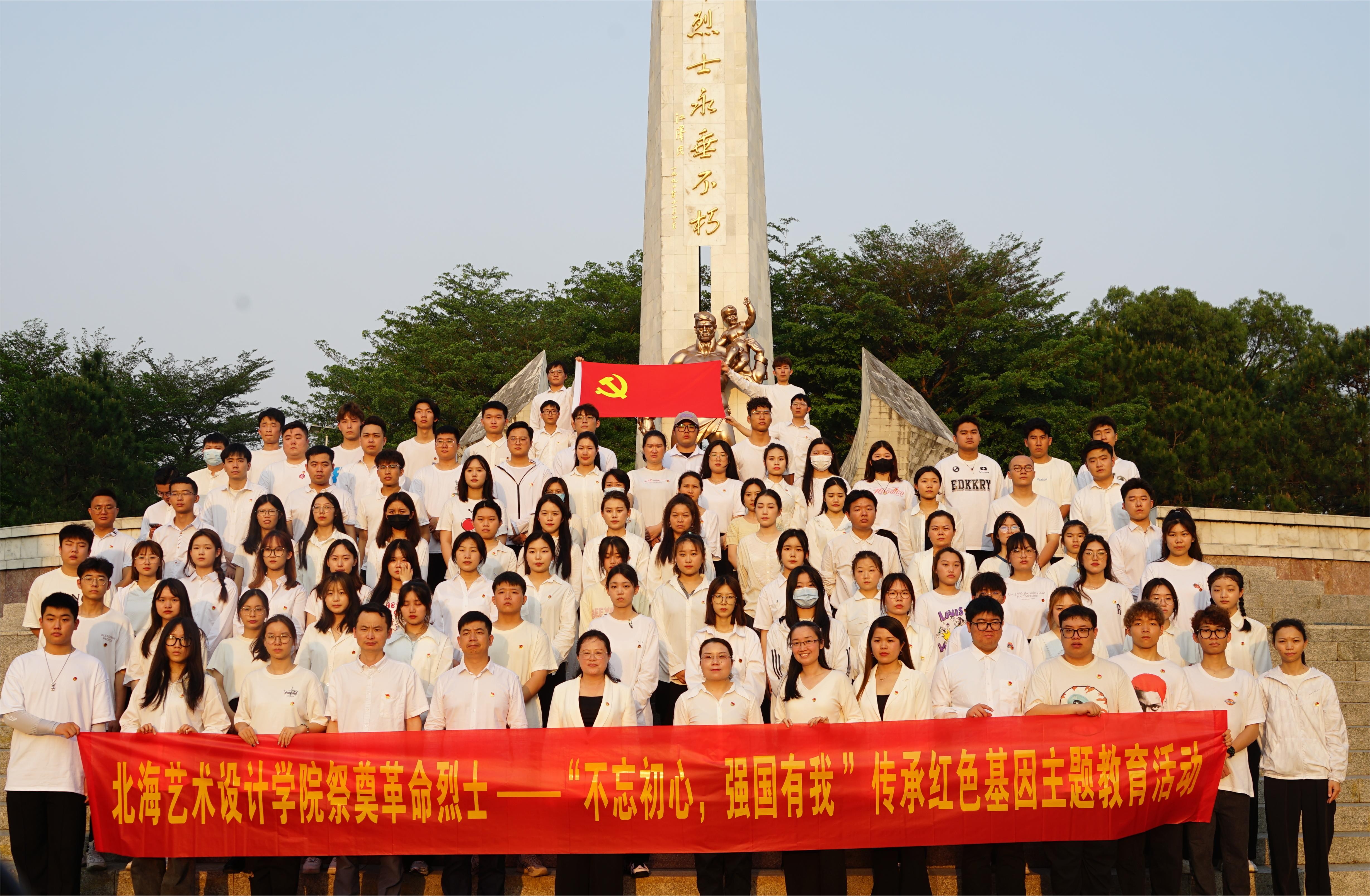 为深入学习贯彻党的二十大精神,对学生进行爱国主义和革命传统教育,缅怀革命烈士,教育学生不忘革命先辈,传承和弘扬伟大的爱国主义精神,树立远大理想,磨炼顽强的意志,练就过硬的本领,培养学生的集体主义和组织纪律观念,北海艺术设计学院于4月4日在北海市长青公园烈士碑组织开展“我们的节日·清明祭英烈--不忘初心,强国有我”传承红色基因主题教育活动。