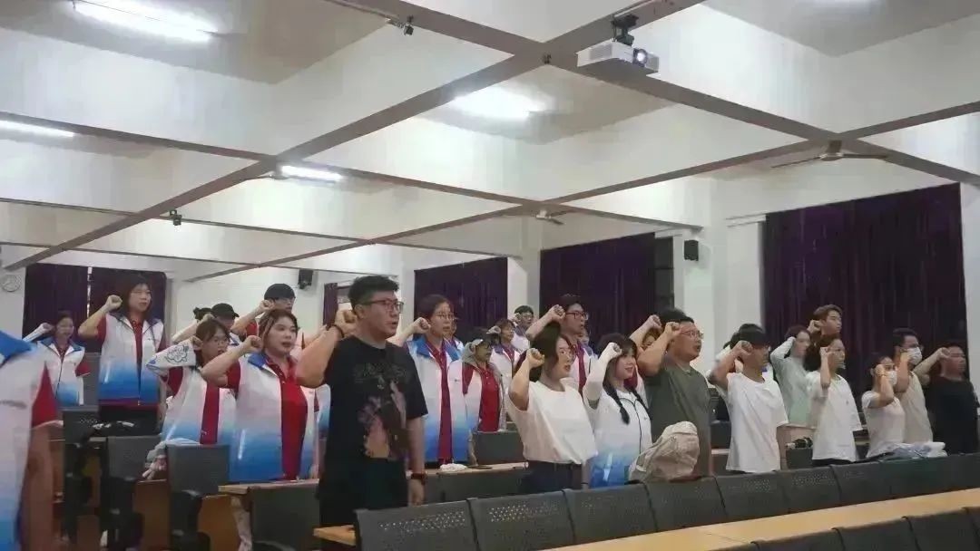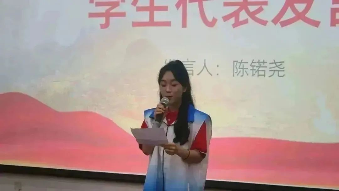 学生代表陈锘尧进行发言,她首先代表所有志愿者对支持本次“三下乡”活动的领导和老师表示感谢。然后,学生代表带领全体志愿者宣誓,作为伟大时代的见证者和奋斗者,我们应当有“行则将至”的决心和“做则必成”的信心,在奋进新征程中展现青年担当贡献青春力量。努力将知识积累、社会观察等成果转化为实实在在的建设性意见和举措。