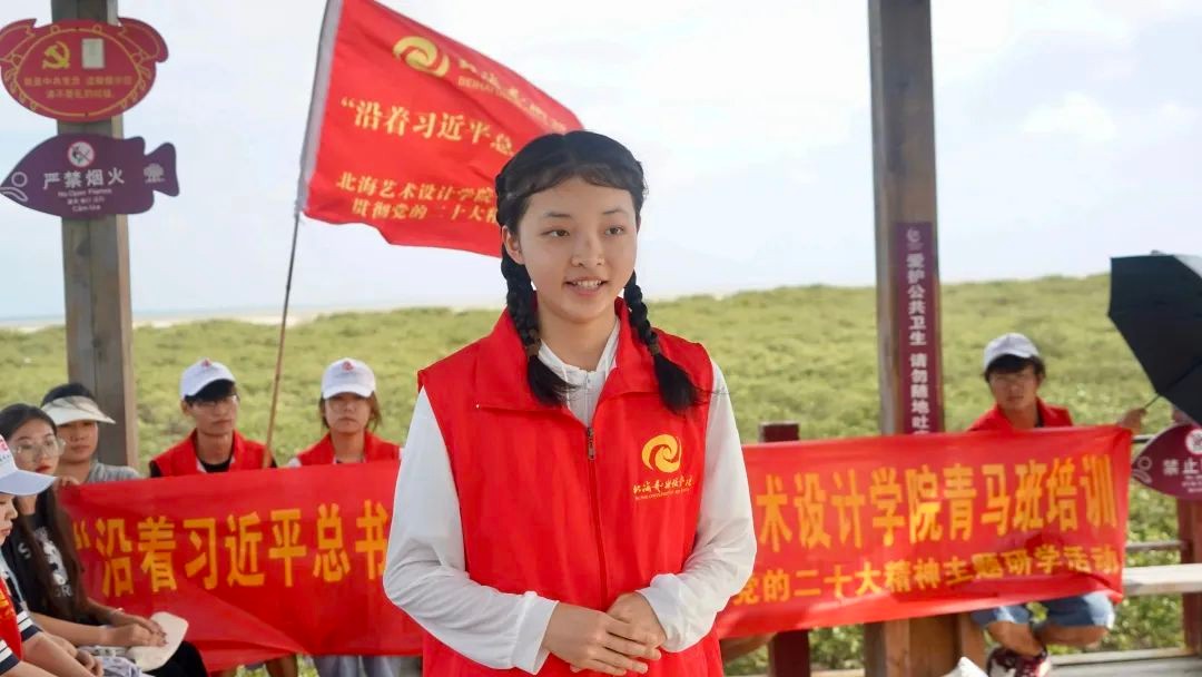 为深入学习党的二十大精神,贯彻习近平新时代中国特色社会主义思想,加强我校“青马工程”队伍建设,提高学员骨干能力素质培养,鼓励学员们成为新时代的合格马克思主义者与优秀青年,提升青马学员团队精神和协作意识。2023年5月27日,北海艺术设计学院青马班学员来到北海金海湾红树林开展“沿着习近平总书记广西足迹”学习宣传贯彻党的二十大精神主题研学活动。