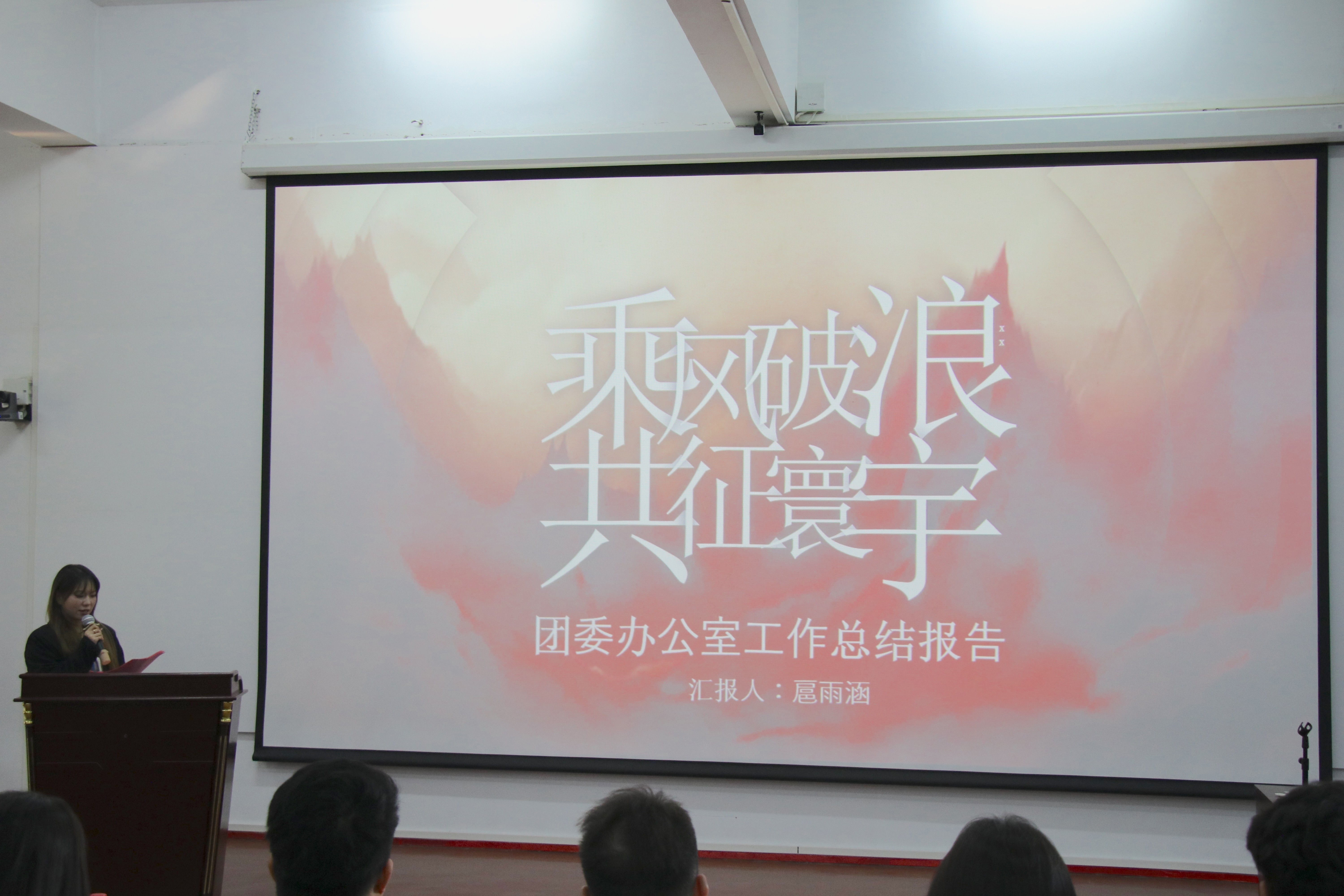 大会共分四个议程:奏唱团歌、各部门汇报、领导讲话与颁奖仪式。