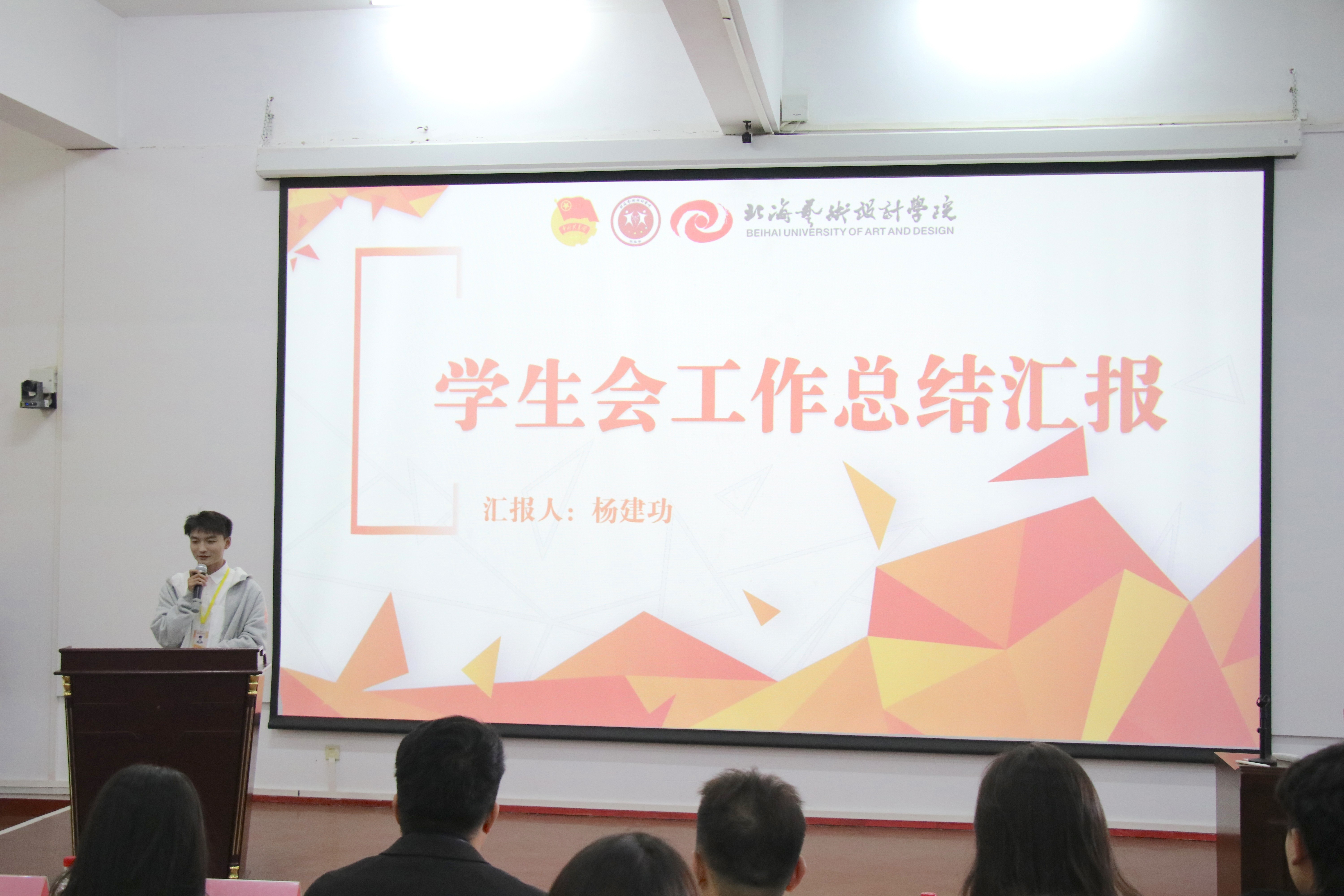 校学生会负责人杨建功从执行与改革、干事培养、工作开展情况及存在的不足四个方面进行了汇报。他指出,学生会在本学期通过改革提高了工作效率,开展了丰富多彩的活动,如迎新晚会、十佳歌手比赛、诵读比赛、元旦晚会等,同时也在工作中发现了需要改进的地方,如更合理的工作安排和提高成员的积极性等。他展望了下学期的工作计划,包括开展三月三活动、科普活动、欢送晚会等。