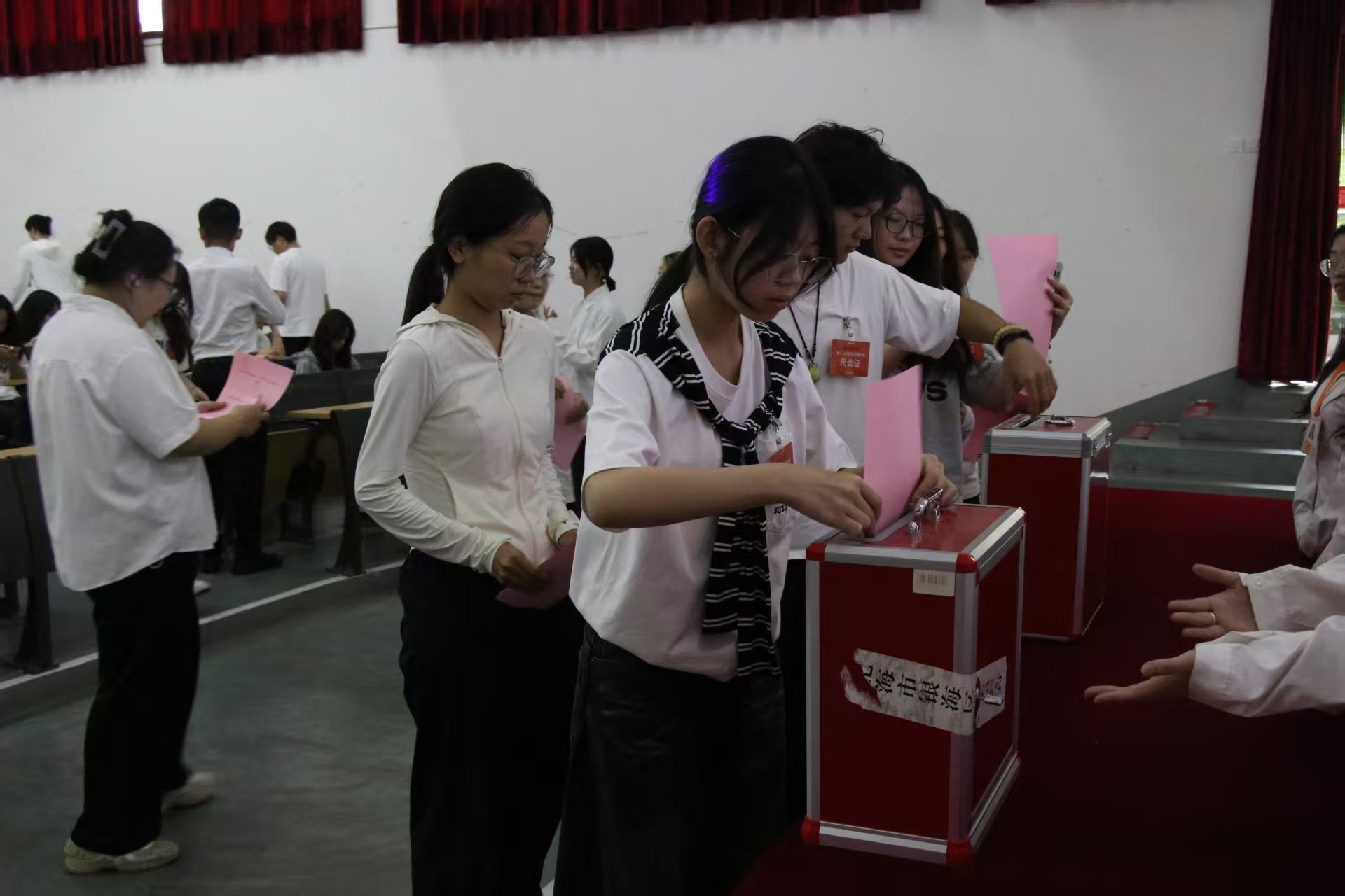 为全面总结过往学生会工作经验,明确未来发展方向与目标,6月6日,我校第十八次学生代表大会在公德楼107召开。列席人员有学校党委副书记刘承初、团委书记唐良春、团委副书记杨美琪和各二级学院分团委书记、团委老师们,以及各学院学生代表124人参加本次会议。
