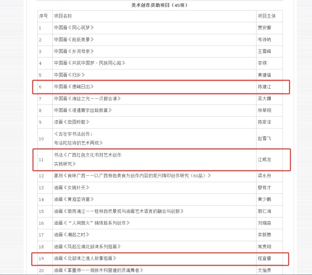 根据广西艺术基金日常管理机构发布的《广西艺术基金2025年度一般资助项目名单通知》,我校美术学院的陈建江、程宣睿老师以及书法学院的江威龙老师,成功获得3项广西艺术基金2025年度一般资助项目中的美术创作资助项目。这3个项目的获批,充分证明了我校师生在艺术领域的不懈奋斗与创新实践。