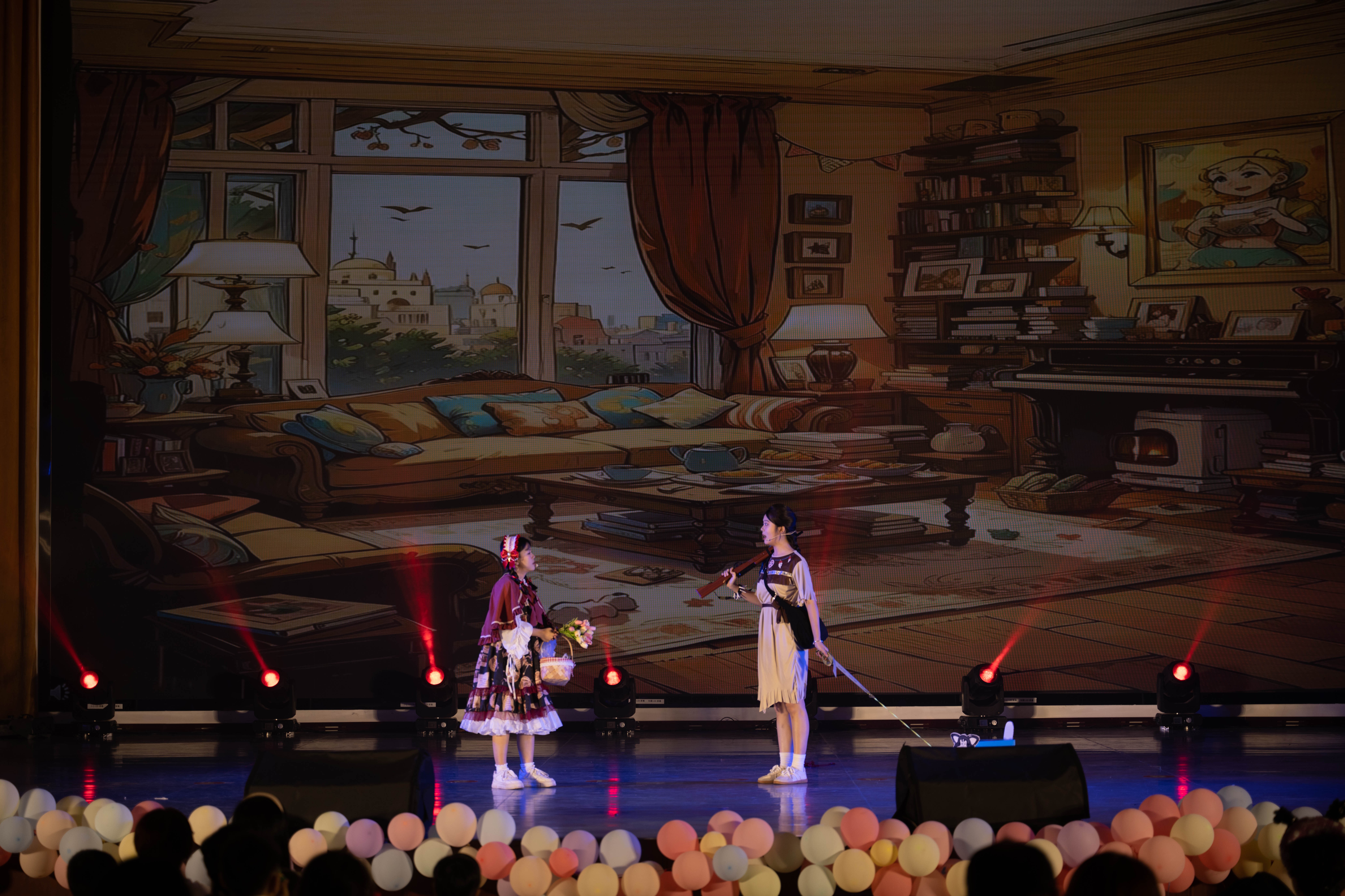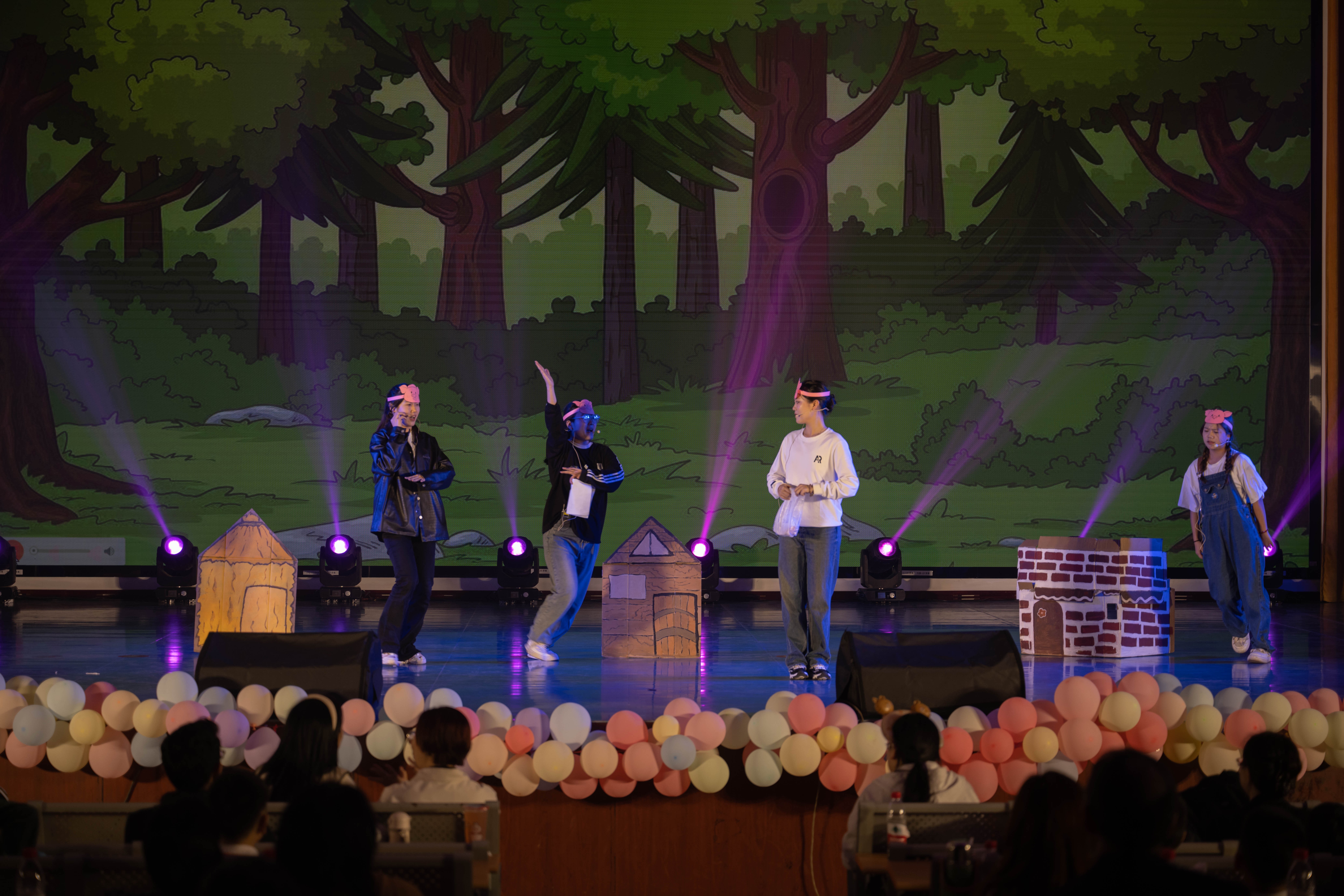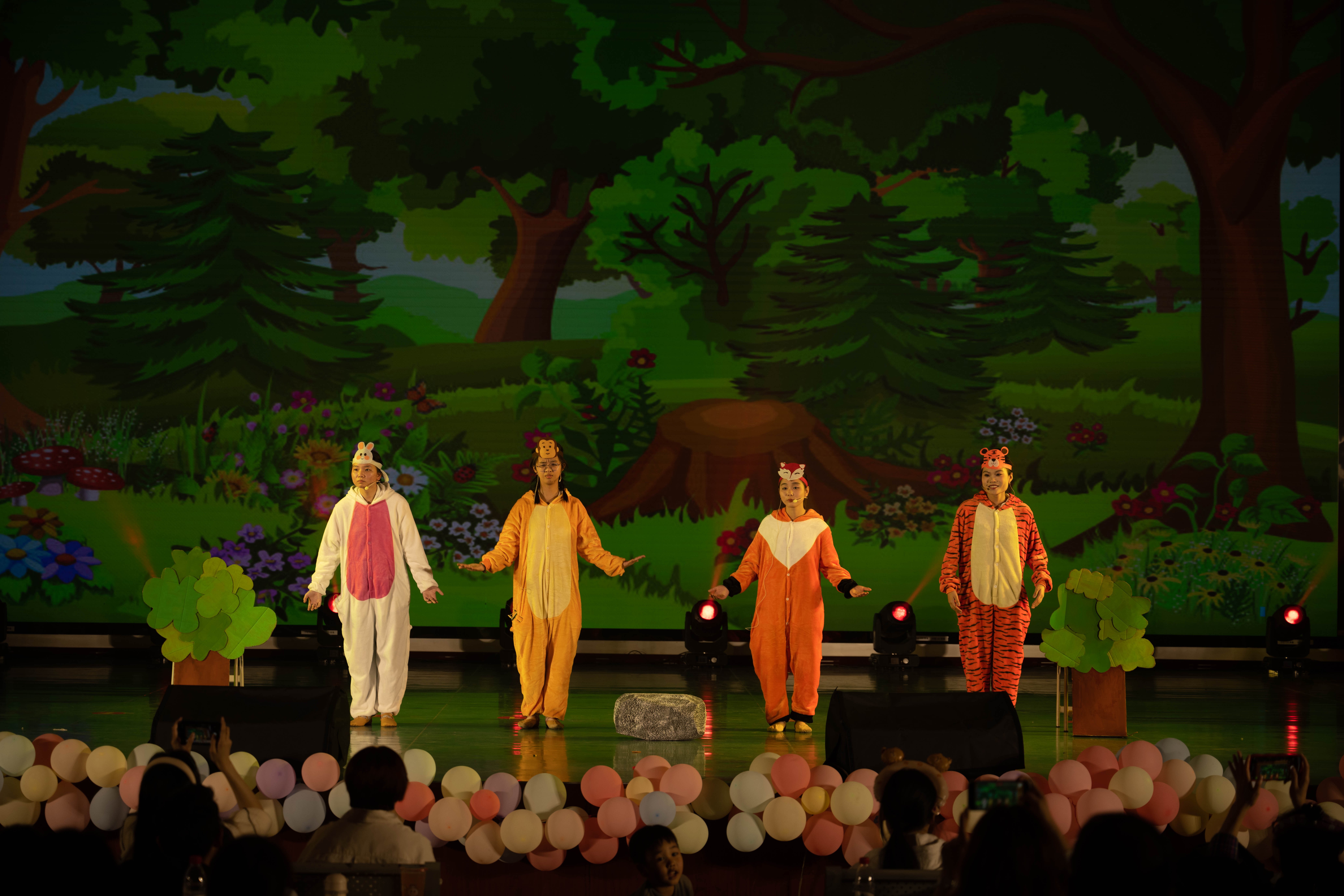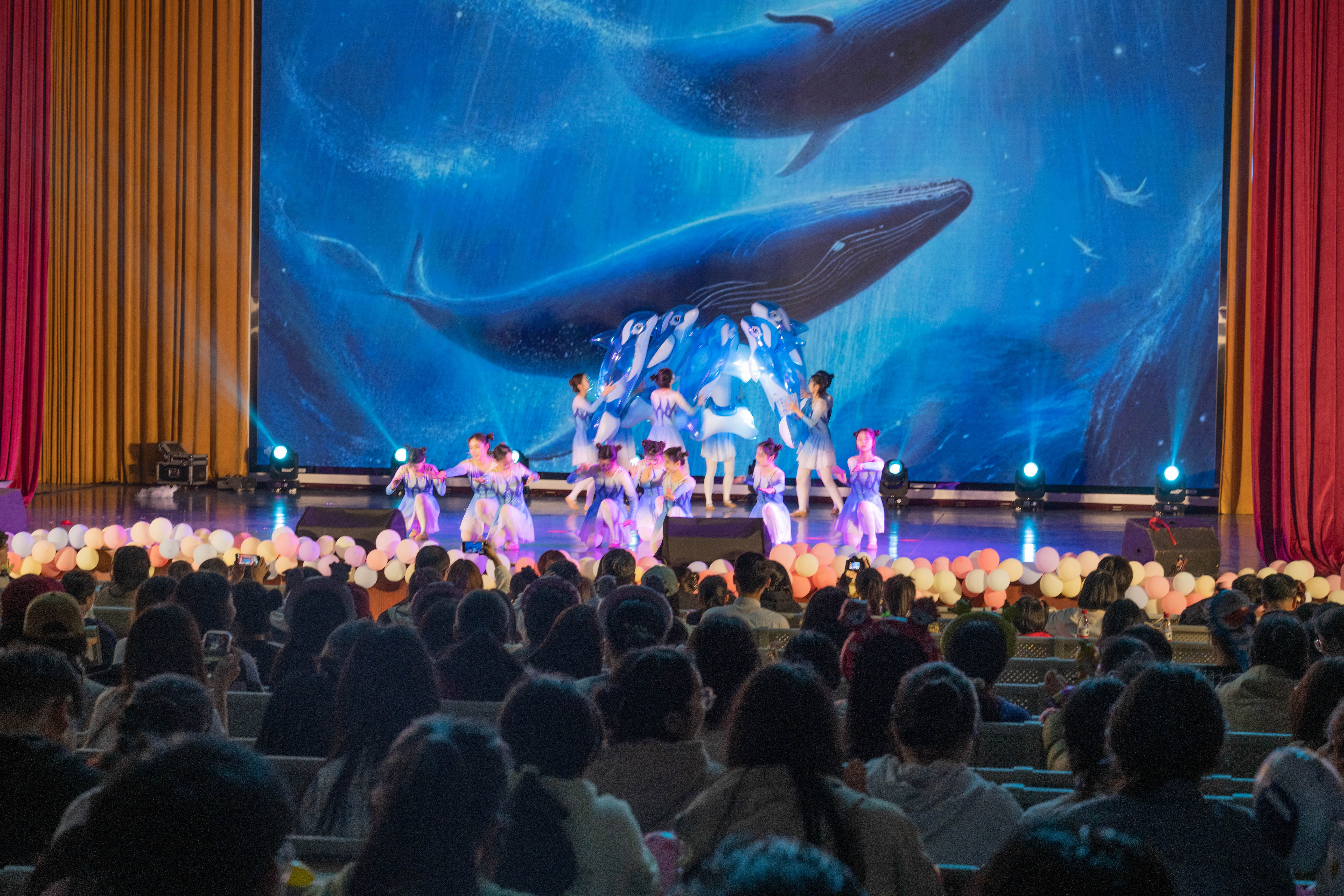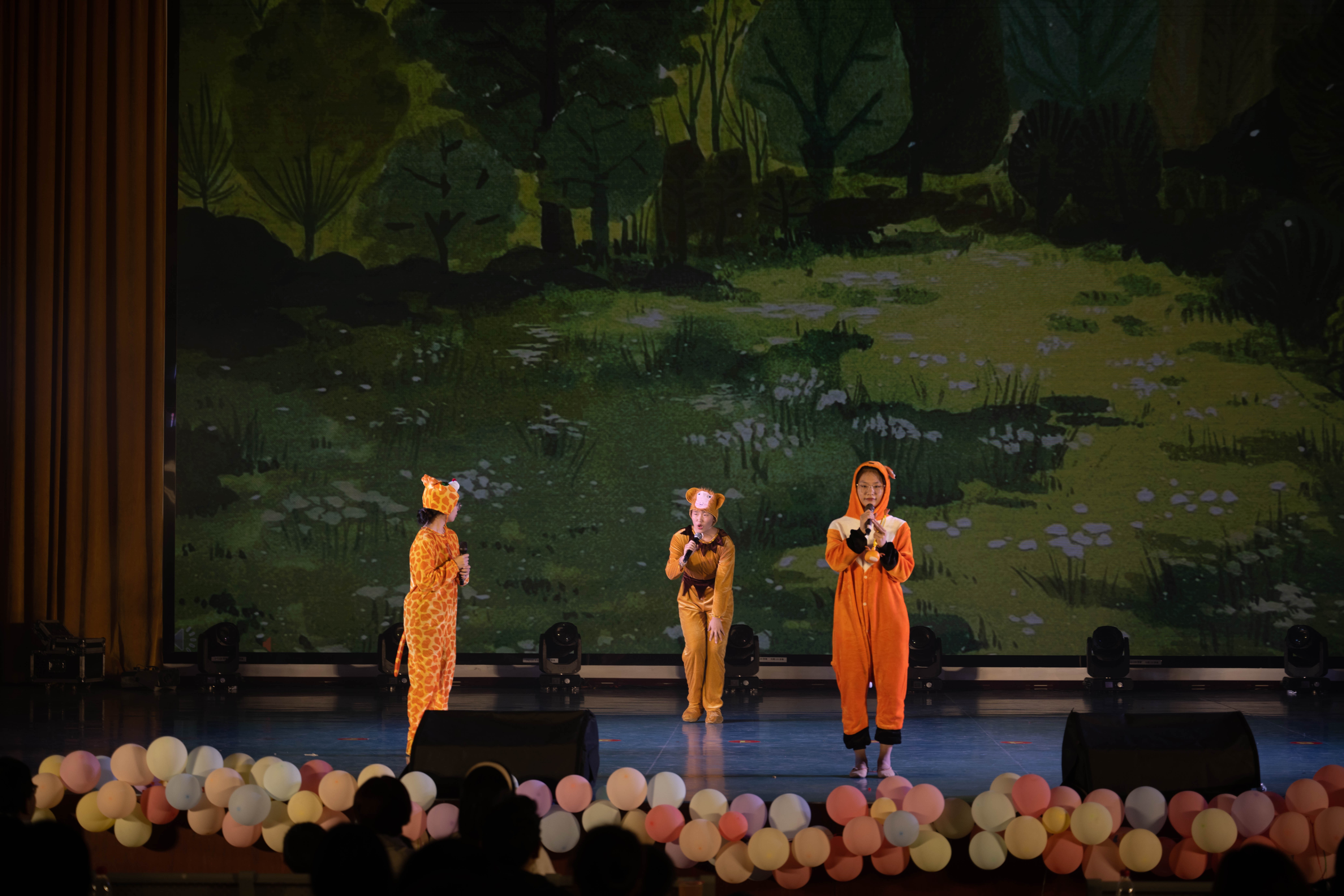 本次儿童文学与创作结课汇报展演将理论知识与实践相结合,在任课老师王雨晴老师、陈美霖老师的带领下,学前教育2022级全体同学综合运用美术、音乐、舞蹈、儿童剧目编排等能力从展演策划、节目编排、现场布置等方面积极参与,共同完成,其中儿童剧均由学生根据原有剧本改编完成,整场结课汇报展积极体现学前教育专业人才培养方案中的海洋文化特色。