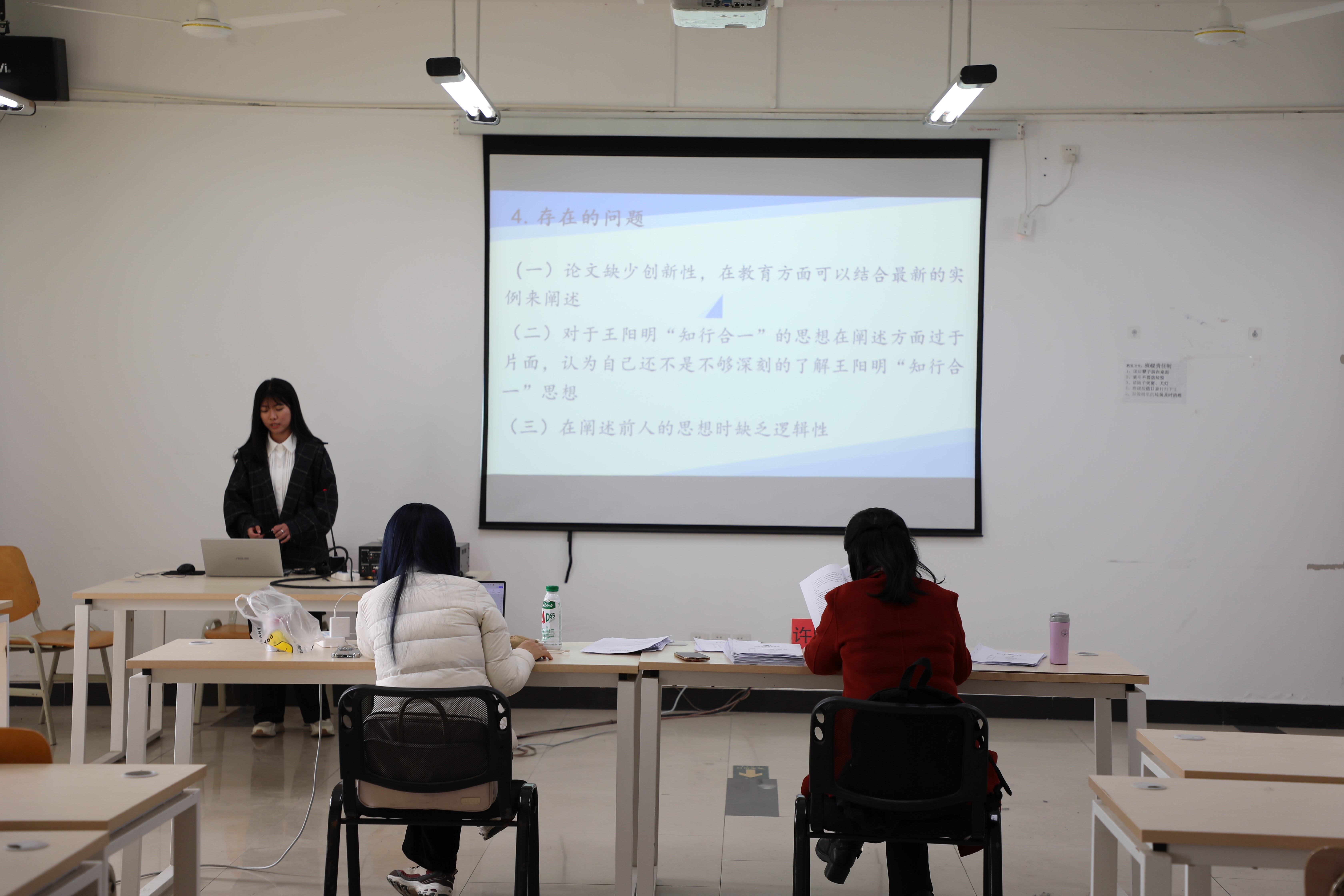3月21日,在北京实践基地励行楼201教室,哲学教研室举办了2024届哲学专业的本科生毕业论文中期汇报检查工作,本次检查工作由哲学教研室副主任覃传茵与许晓平教授主持开展。中期检查汇报中,同学们结合自己的选题对毕业论文的研究内容和研究思路、论文已经完成情况等进行了介绍,并重点汇报毕业论文未完成的内容、遇到的困难和解决方法等情况。指导老师对学生此次的中期汇报中存在的问题给出了详细的整改意见,建议各位同学要尽快完成后续工作,以确保毕业论文保质保量按期完成,鼓励同学们通过本次汇报,认真总结经验,培养良好的逻辑思维和运用专业知识解决问题的能力,为未来升学和社会服务做好准备。