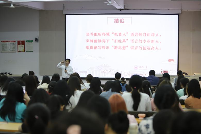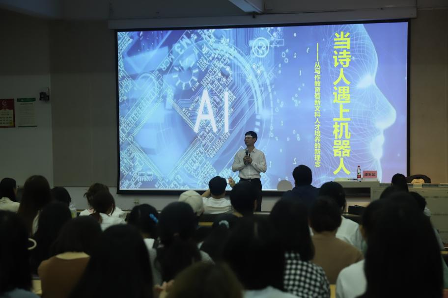 湖南大学文学院谭军武教授为我院学生开展讲座《当诗人遇上机器人》