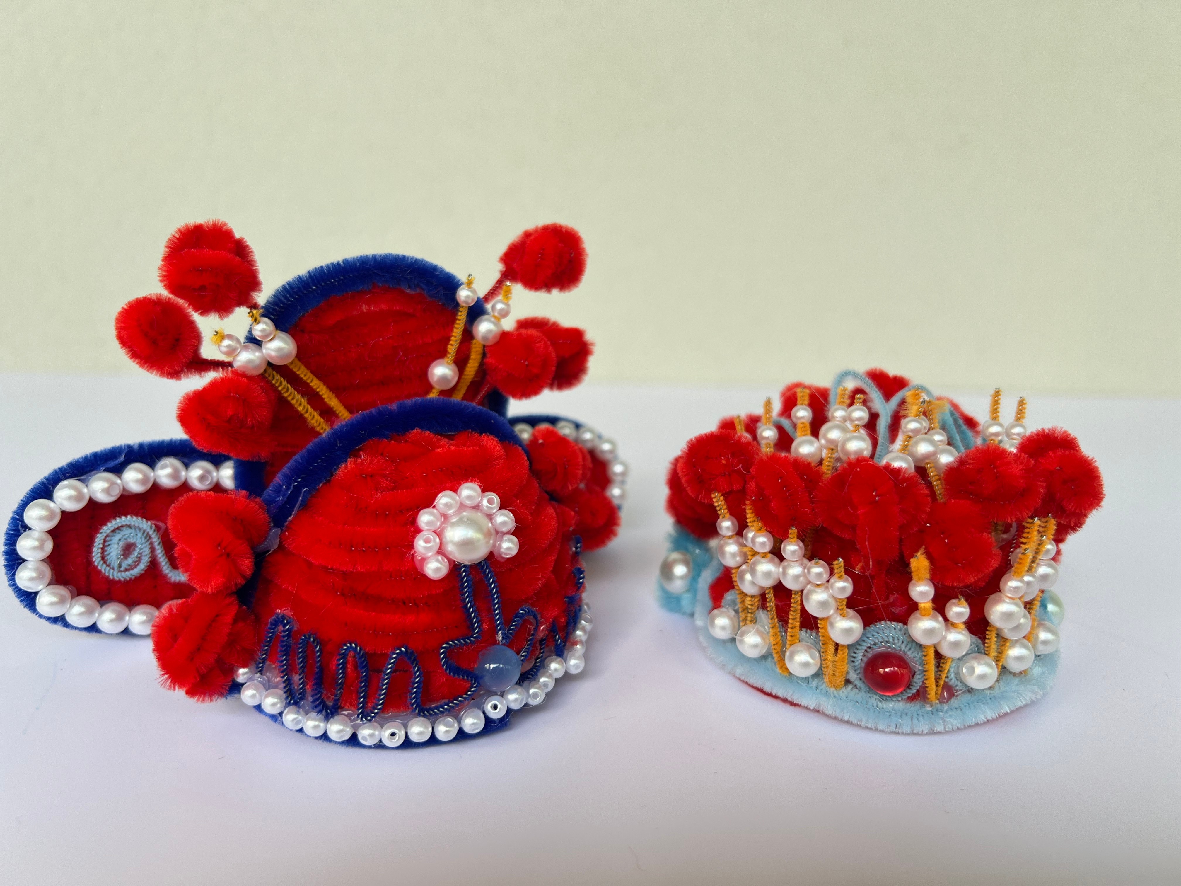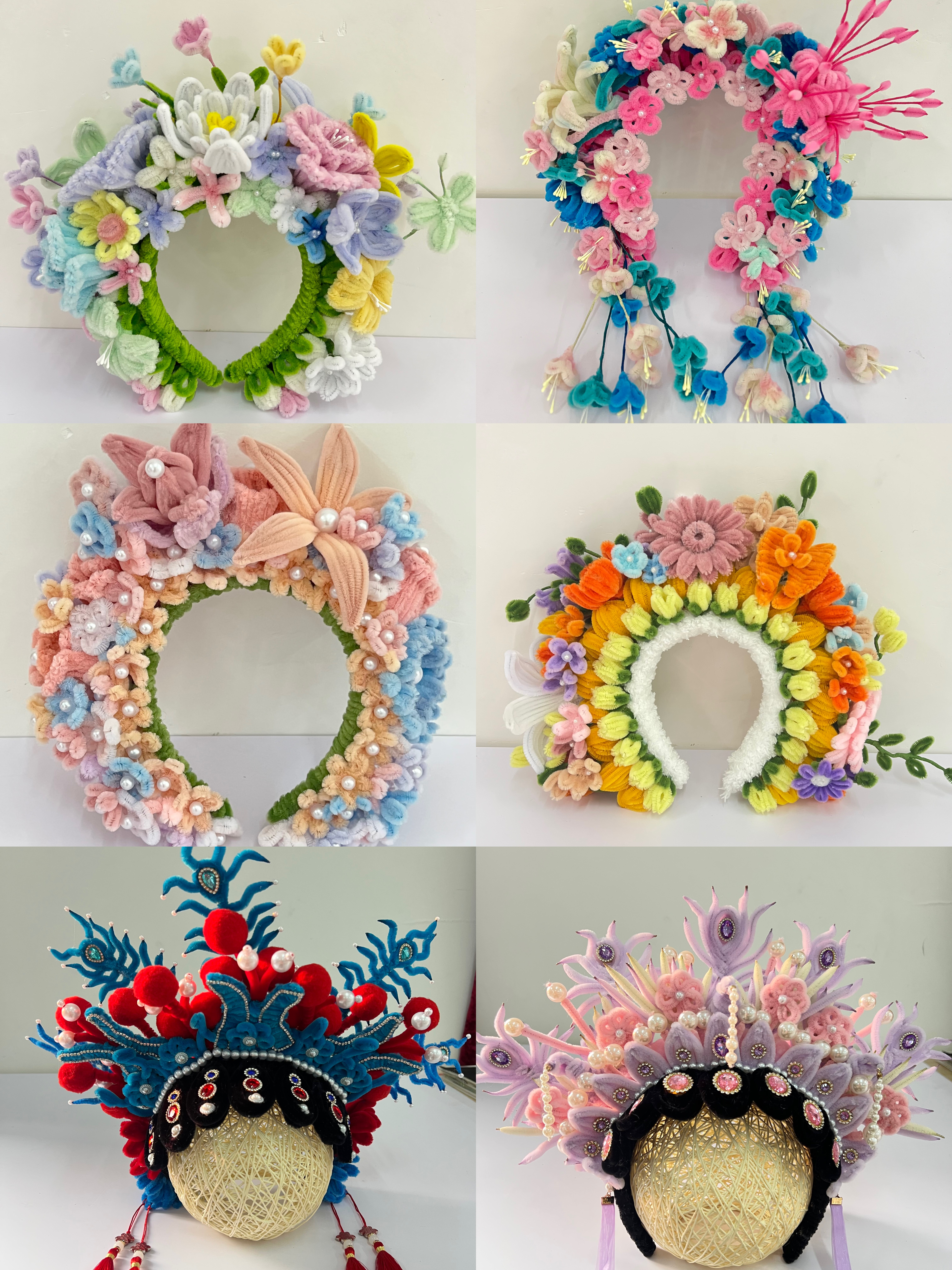 扭扭棒材料的引入旨在保留簪花传统文化的同时,打破传统簪花制作对鲜花材料和技艺要求较高的局限,学生用扭扭棒对簪花的色彩造型进行创新设计,融入现代时尚元素,让古老的簪花焕发出时尚活力。