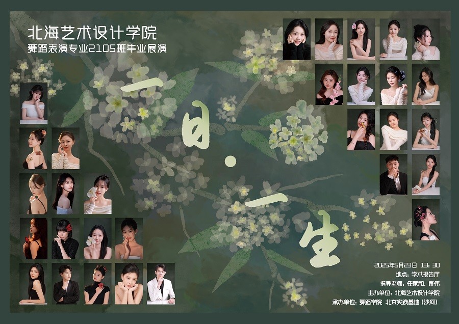 2025年5月23日-5月24日,北海艺术设计学院舞蹈学院舞蹈表演专业2025届毕业生将以最动人的舞姿,上交他们的大学本科四年的青春答卷。本次毕业展演共五场,涵盖古典舞、民族舞、现代舞等多元风格,既有传统的深厚底蕴,又有创新的时代表达,展现学生四年专业学习的成长与蜕变。