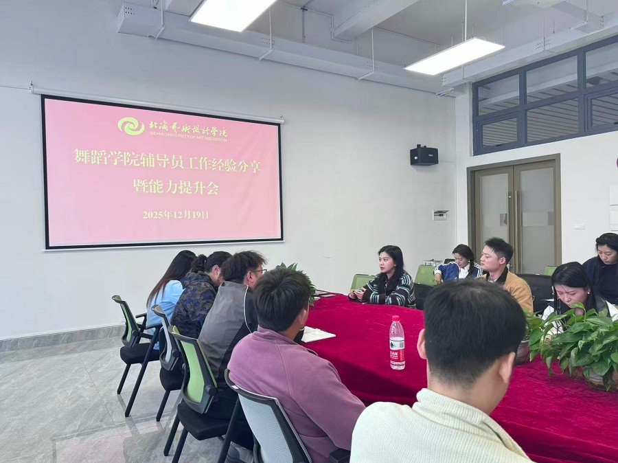 2025年12月19日下午,舞蹈学院在艺德楼215举办辅导员工作经验分享暨能力提升会。会上围绕舞蹈专业学生管理的工作经验交流,现场展示的工作笔记内容详实,体现了辅导员用心育人的责任担当。舞蹈学院党支部书记宋慧敏、学工办全体教师及全体辅导员出席会议,会议由学工办主任谢鹏主持。