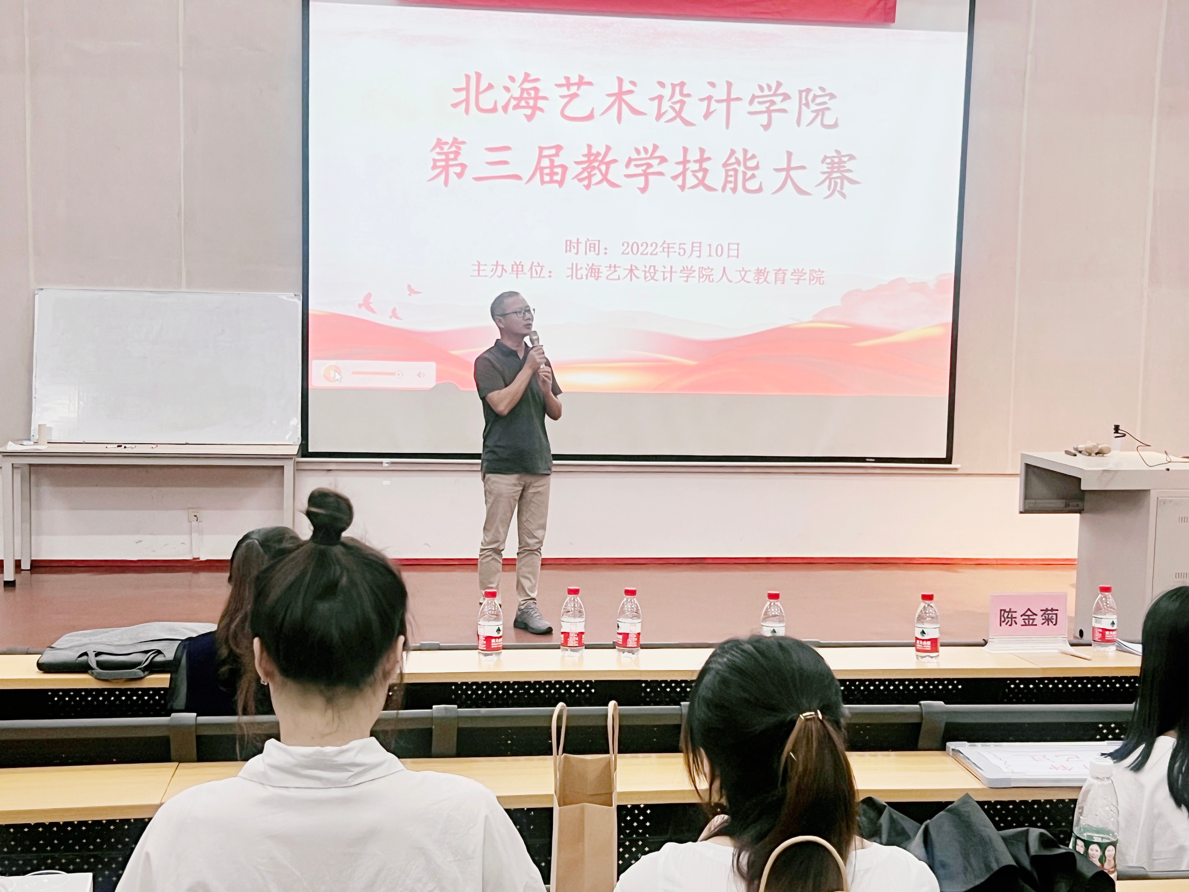 比赛结束,人文教育学院院长熊秀峰对本次比赛进行发言,熊秀峰院长指出,本次教学技能大赛为同学们搭建了交流、展示、观摩、学习的专业舞台,进一步增强了同学们提高教育教学技能与综合素质的紧迫感和自觉性,对激发学生爱岗敬业、教书育人的责任感与使命感起到了推动作用。在疫情下,同学们的学习虽然受到不少影响,但各位同学仍然砥砺前行,抓住每一次机会,提升自己,追求梦想。各位参赛选手以饱满、积极向上的精神风貌展示了各自的风采,展现了扎实的专业综合素质和教学能力。希望同学们通过不断了努力,成为更加优秀的北艺学子,不负梦想,不负韶华。