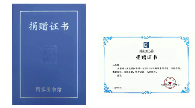 《勇敢的阿牛哥》入藏国家图书馆证书
