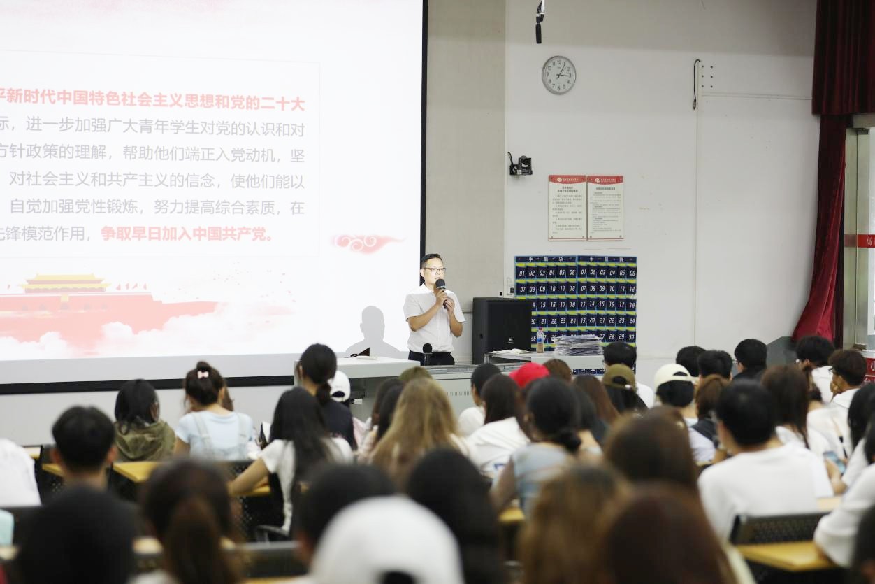 紧接着,党总支书记庞定坤于9月14日15:00在G-107为新生们带来了题为“传承红色基因,凝聚奋进力量——以实际行动向党组织靠拢”的入党启发教育。他强调了树立正确的三观、坚定马克思主义信仰、中国特色社会主义信念以及实现中华民族伟大复兴中国梦的信心,引导学生将个人理想与国家发展紧密结合。