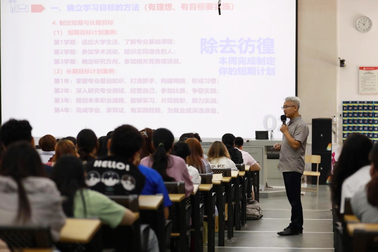 最后,副院长蔡世伟于9月16日9:00在G-107开展了学业指导与课堂管理教育,帮助新生明确学习目标、制定学习计划,强调了课堂纪律意识,鼓励学生积极参与课堂互动。